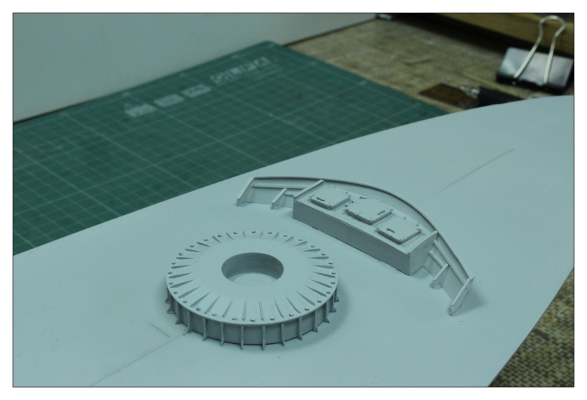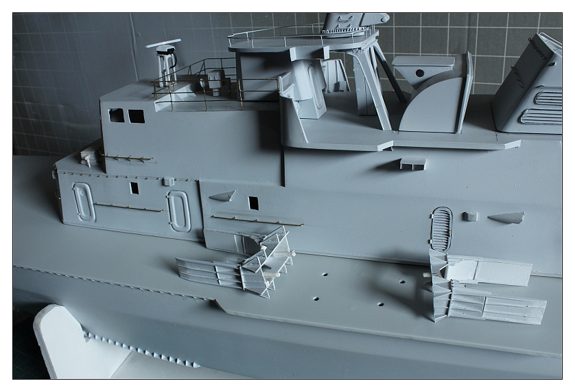 Nadbudówka otrzymała większość metalowych poręczy, zejściówek i jakiś uchwytów służących do ???