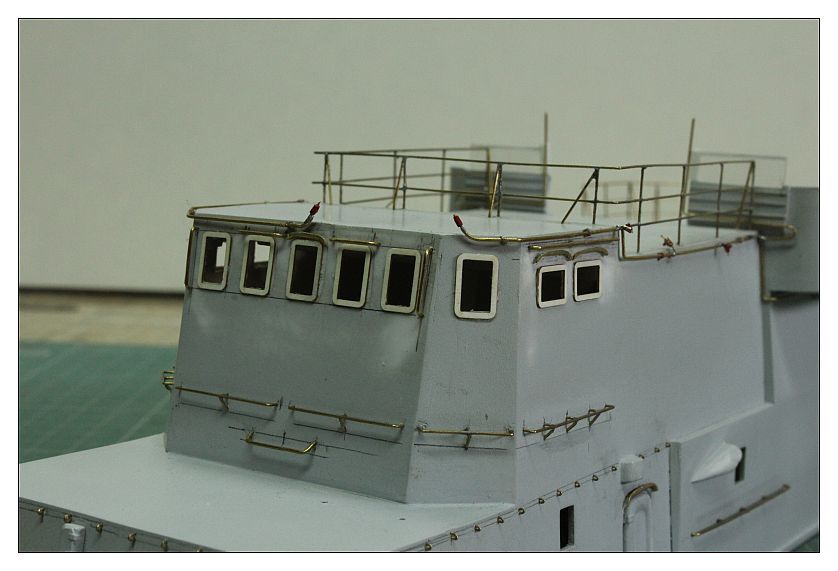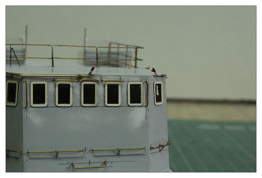 Nadbudówka otrzymała zewnętrzną sieć instalacji p.poż ,wykonana z pręta mosiężnego 0,5mm co w realu