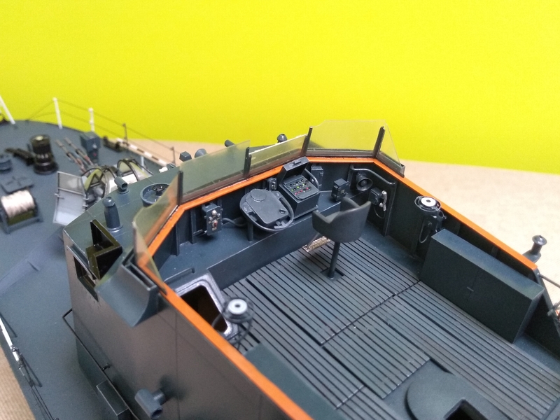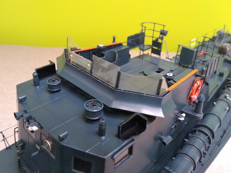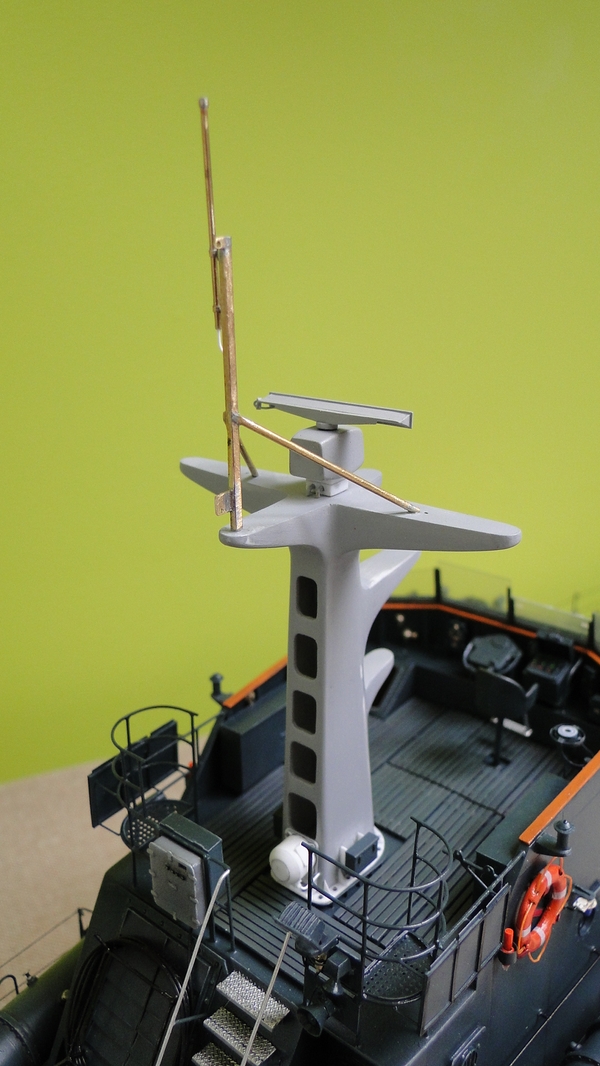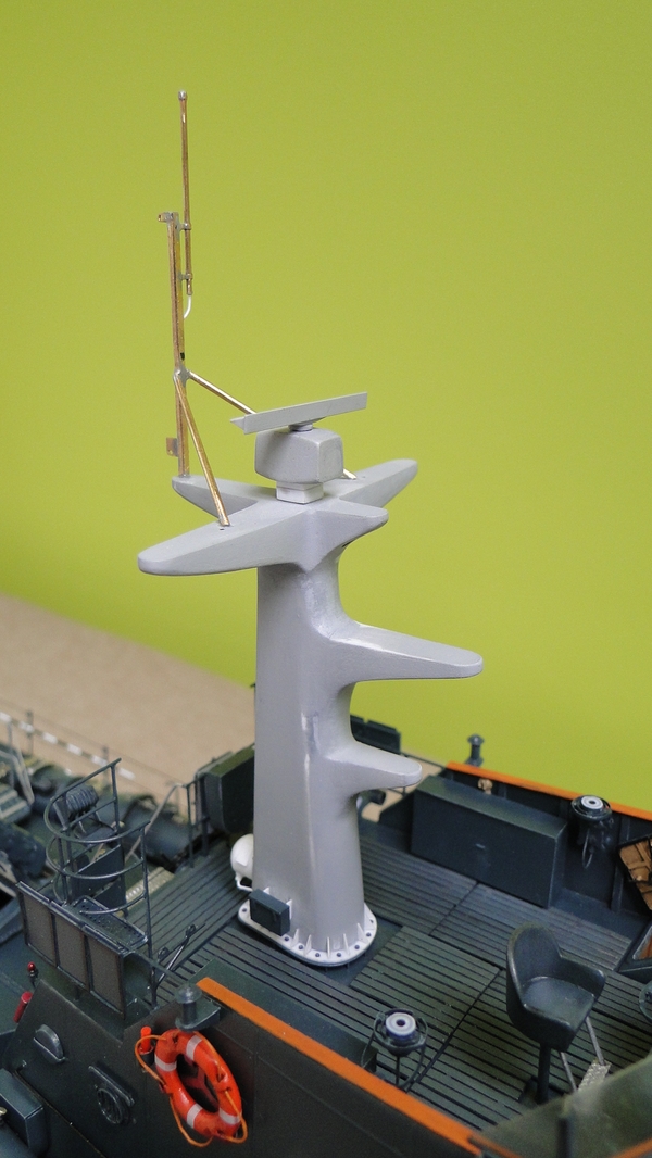 Poza masztem pozostało mi do zrobienia wnętrze nadbudówki, anteny prętowe, kalkomania (drukuje się), uruchomienie siłowni i torpeda(y).