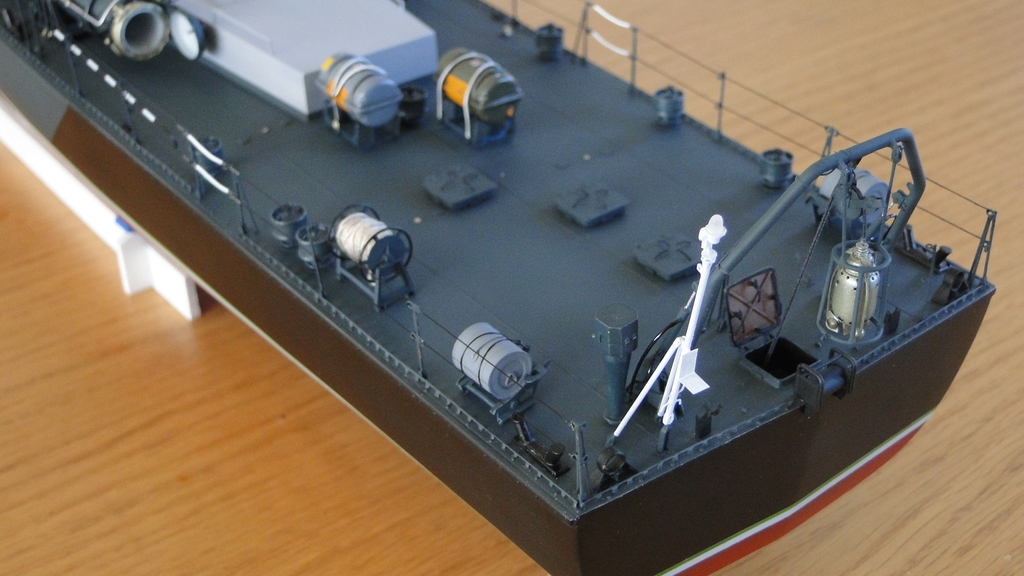 Wyposażenie pokładu i relingi skończone. Brakuje tylko rufowego światła ale to dojdzie jak będę robił oświetlenie nadbudówki.