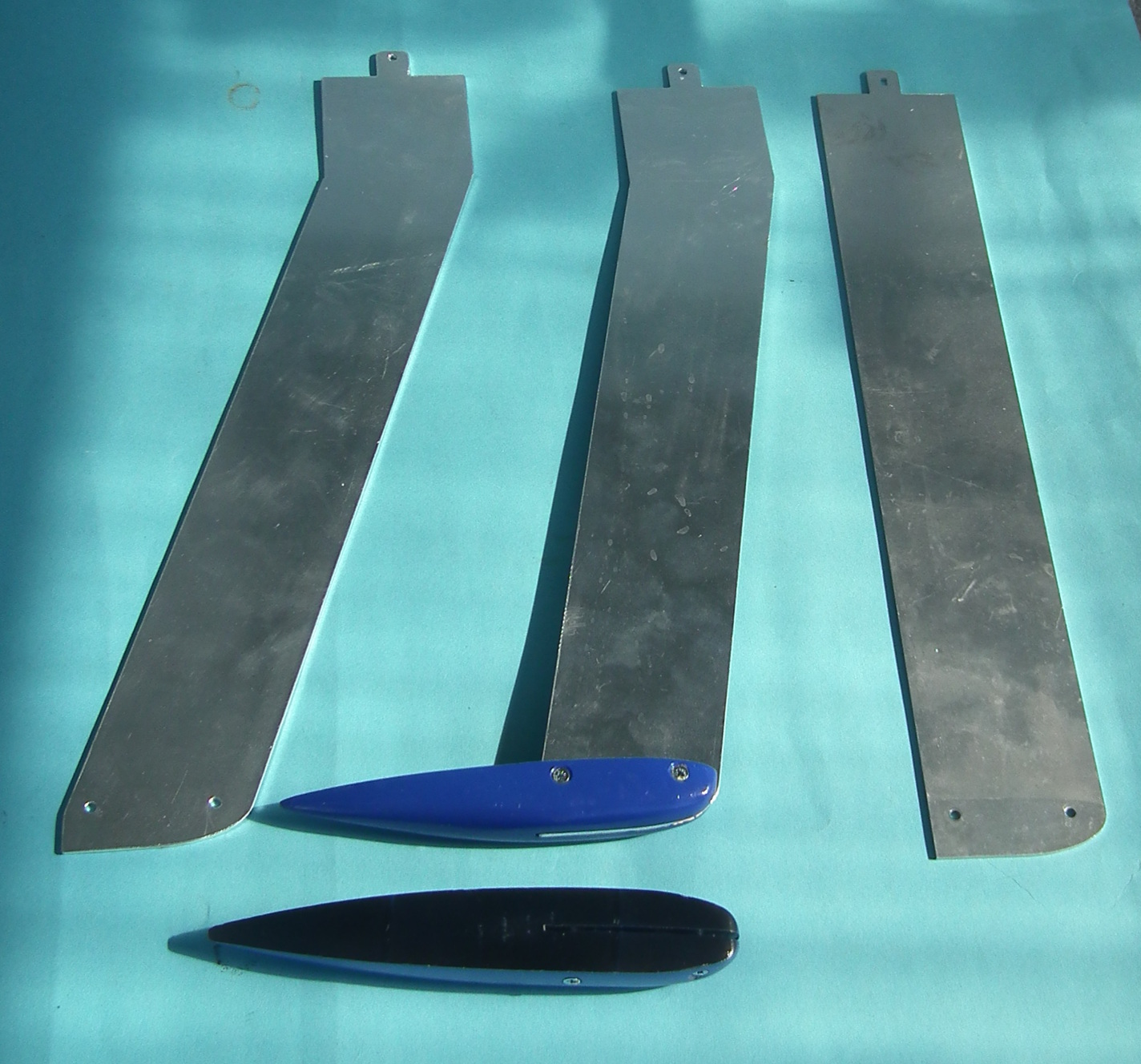 Płetwy są wypalone laserem z blachy aluminiowej 2 mm , taka obróbka nie krzywi i nie wichruje materiału . Płetwa jest idealnie prosta . Natomiast balast odlewam sam z ołowiu odrazy z wycięciem pod płetwę i otworami pod śruby .