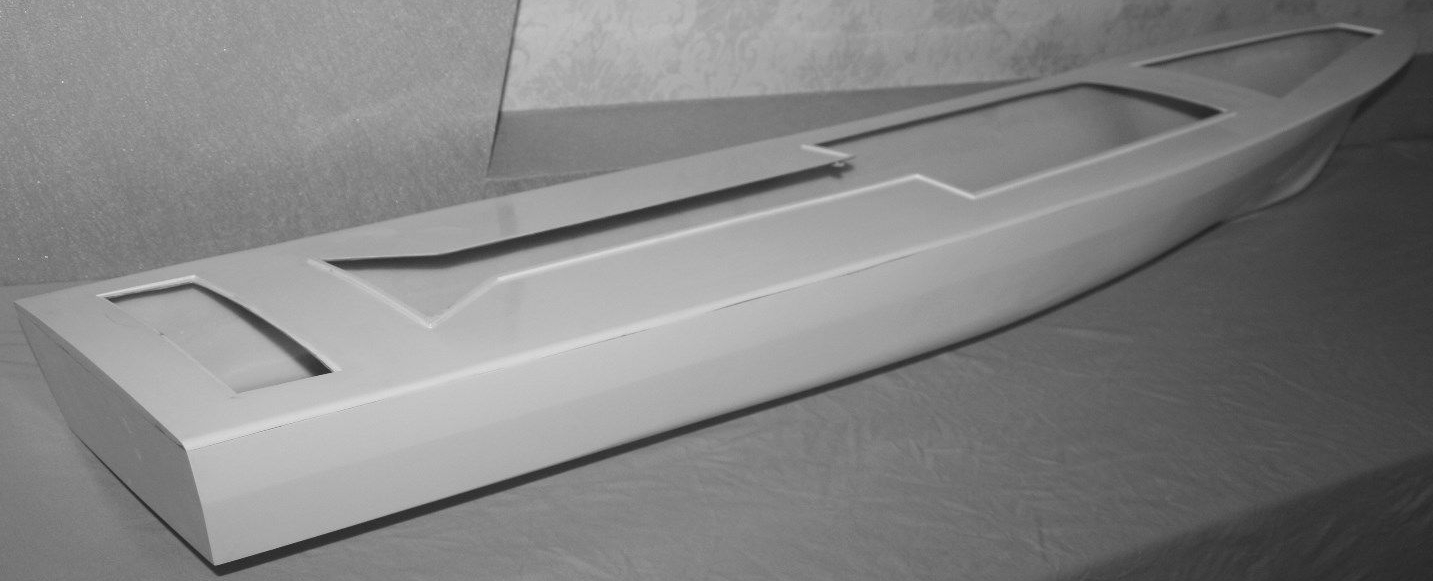 Kadłub laminatowy skala 1:35 .Zamontuje 3 silniki każdy ze zintegrowaną przekładnia.