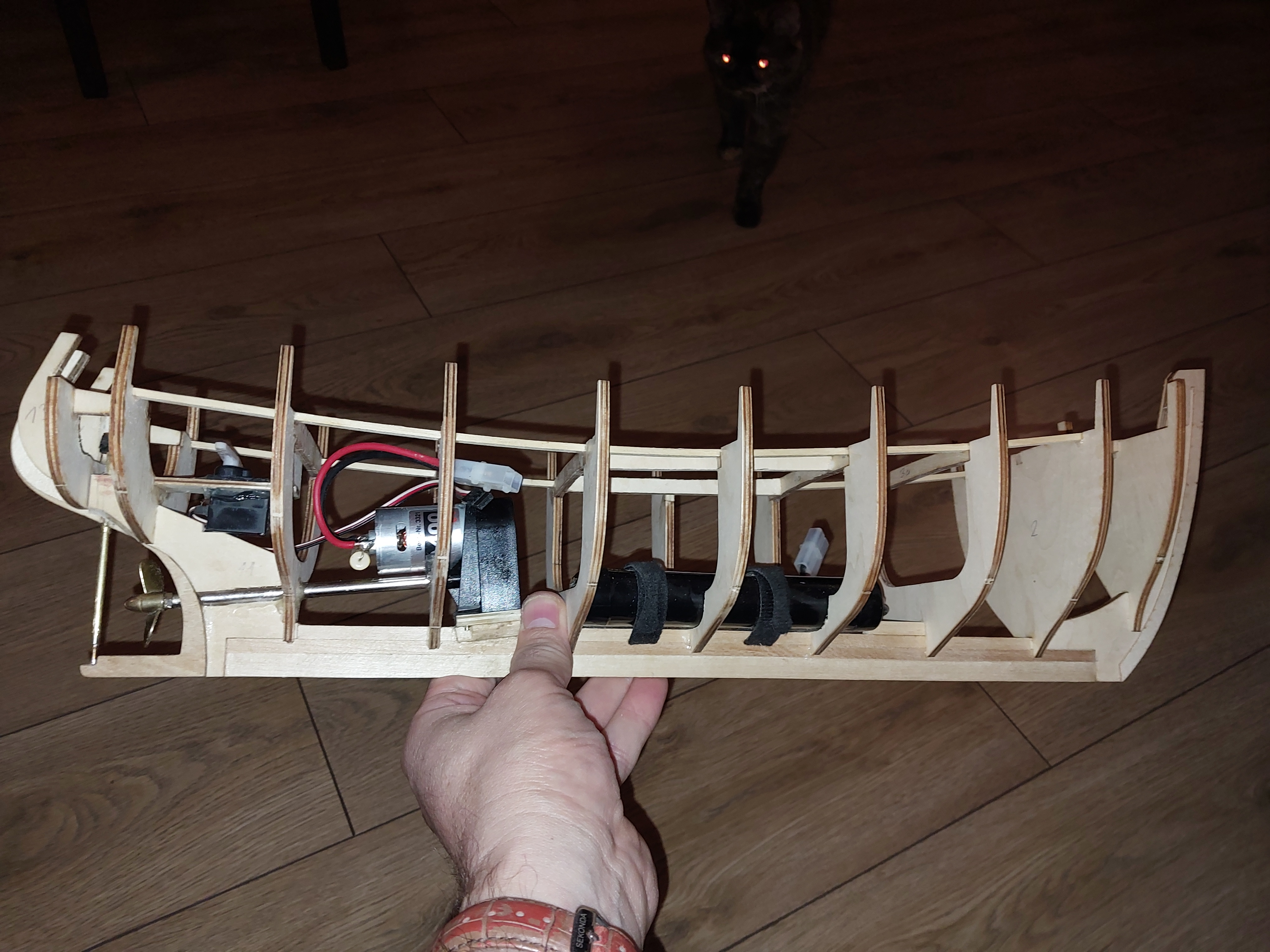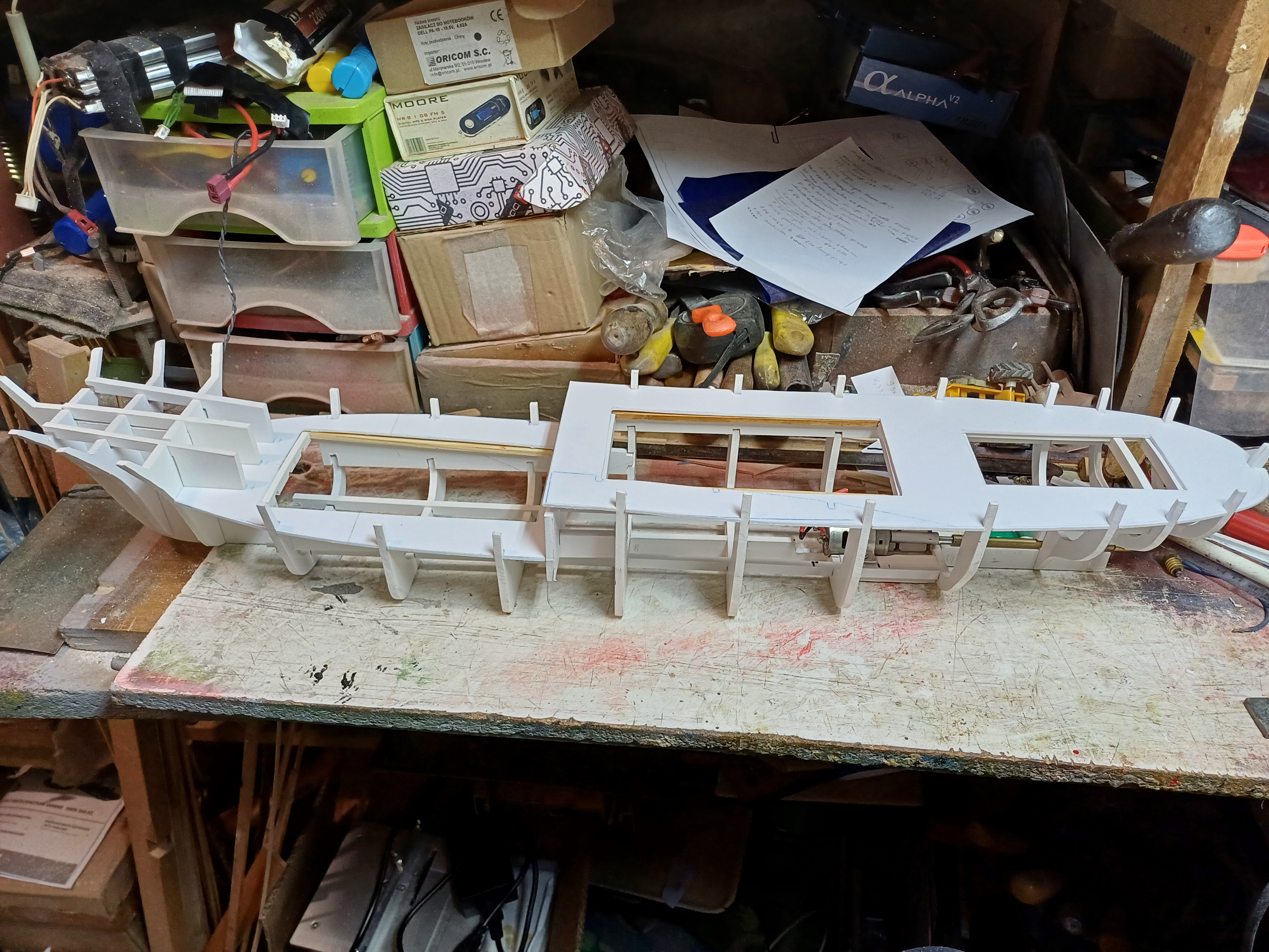 Na i stało się! zaczęła się jesień więc pora ruszyć z nowym projektem. Na tapet idzie ten oto model. Stocznia wystawiona, elektronika zebrana, asystentka jak widać gotowa do pracy no to zaczynamy!