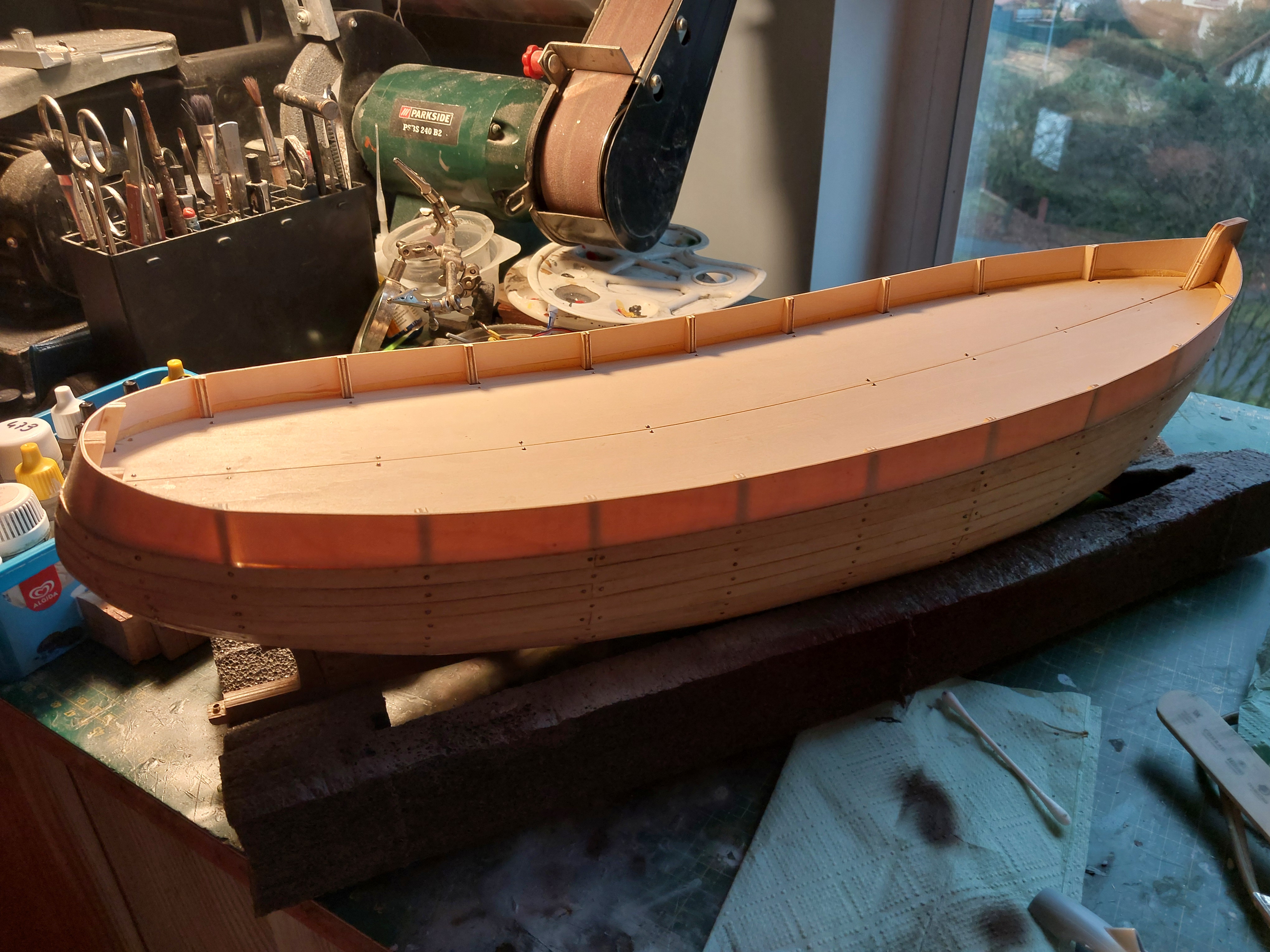 Prace idą do przodu, to super, ale mam jedną uwagę. Te wewnętrzne wsporniki burt, które są przedłużeniem wręg nie wyglądają najlepiej. Ja bym je odciął i wymienił na coś bardziej zblizonego do rzeczywistości.