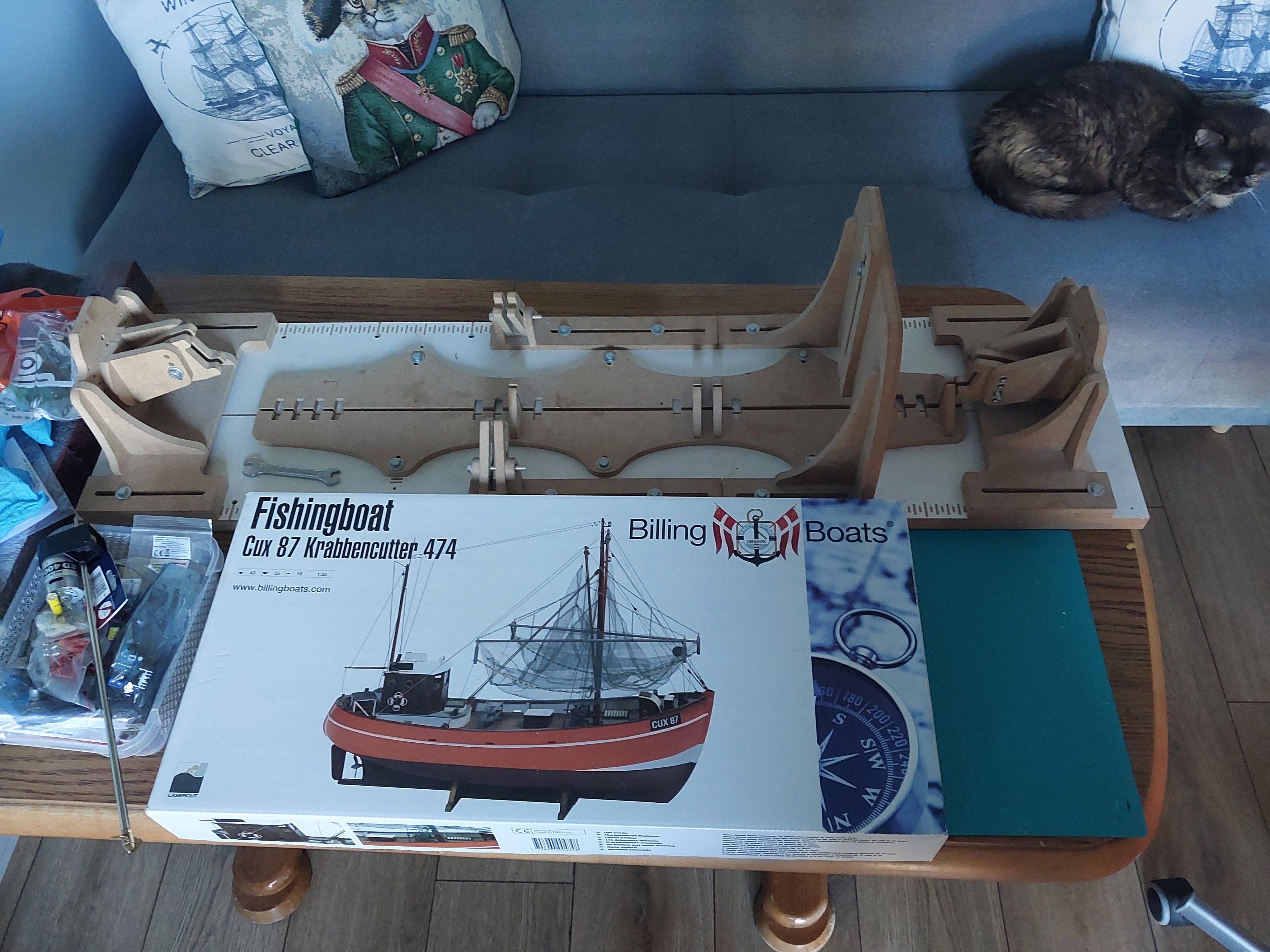Na i stało się! zaczęła się jesień więc pora ruszyć z nowym projektem. Na tapet idzie ten oto model. Stocznia wystawiona, elektronika zebrana, asystentka jak widać gotowa do pracy no to zaczynamy!