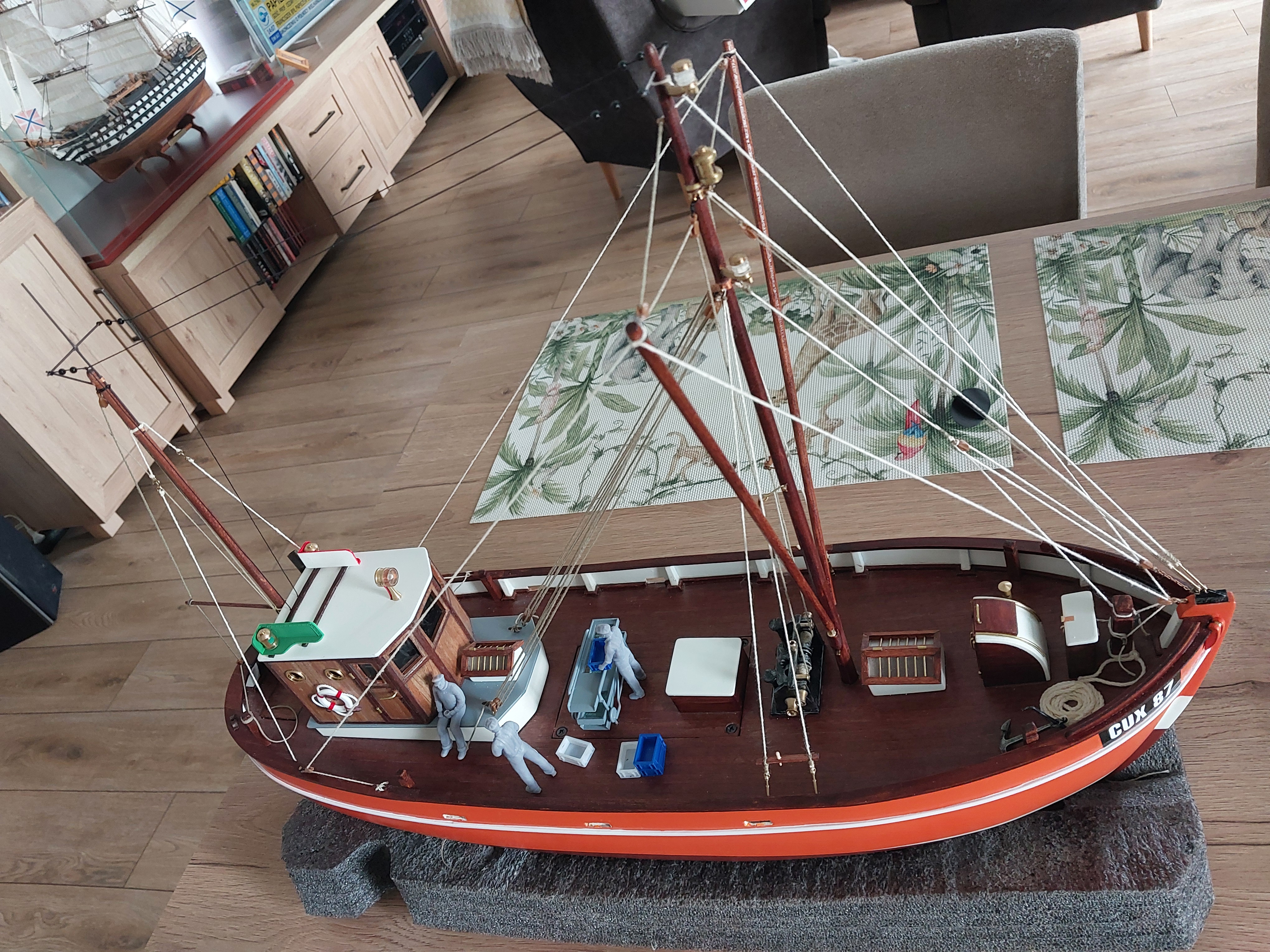Witam pracę zbliżają się do końca. Pozostało zrobienie sieci i pomalowanie załogi. Myślę, że na koniec maja model powinien być gotowy i pozostanie zamieścić link do filmu z prób na akwenie.