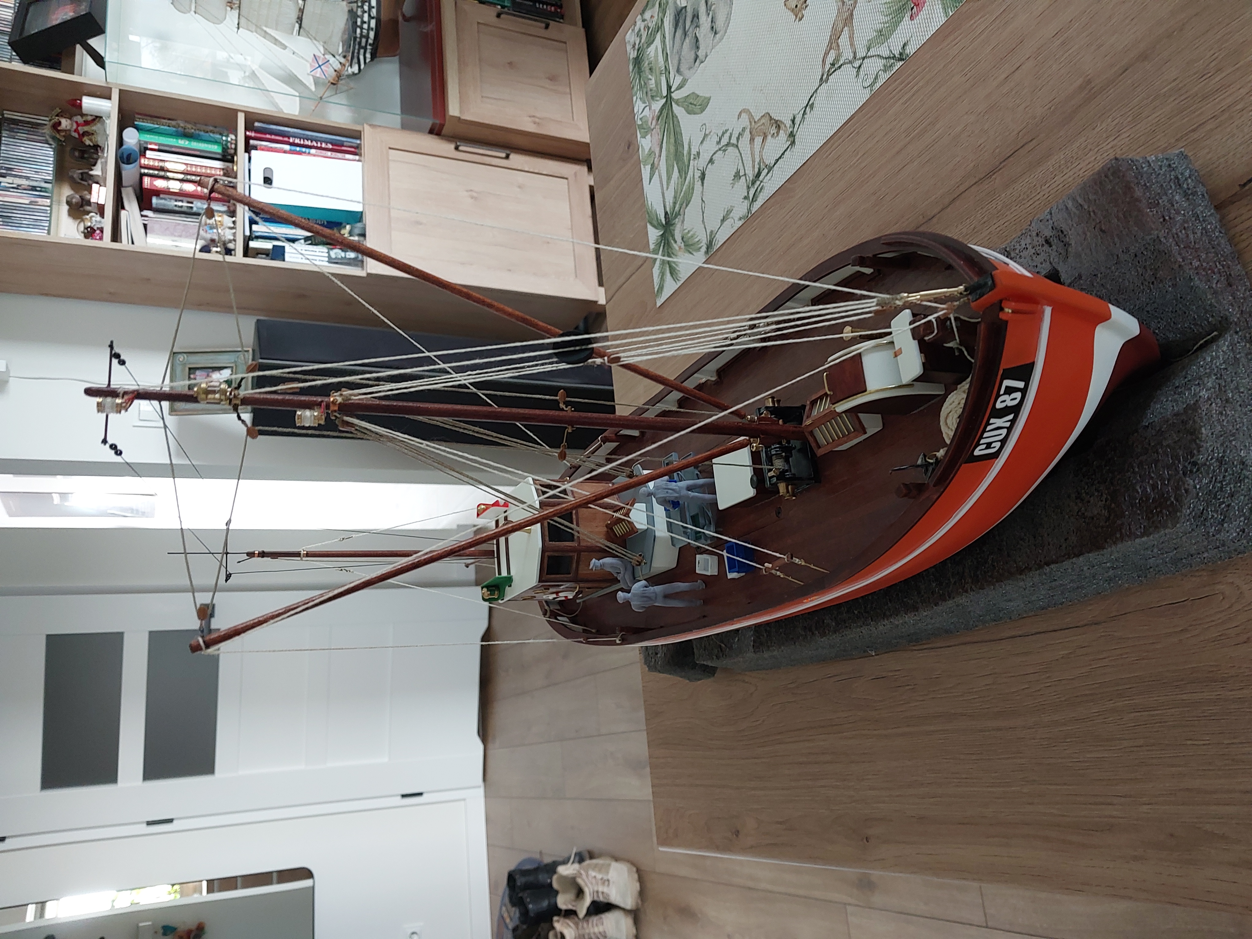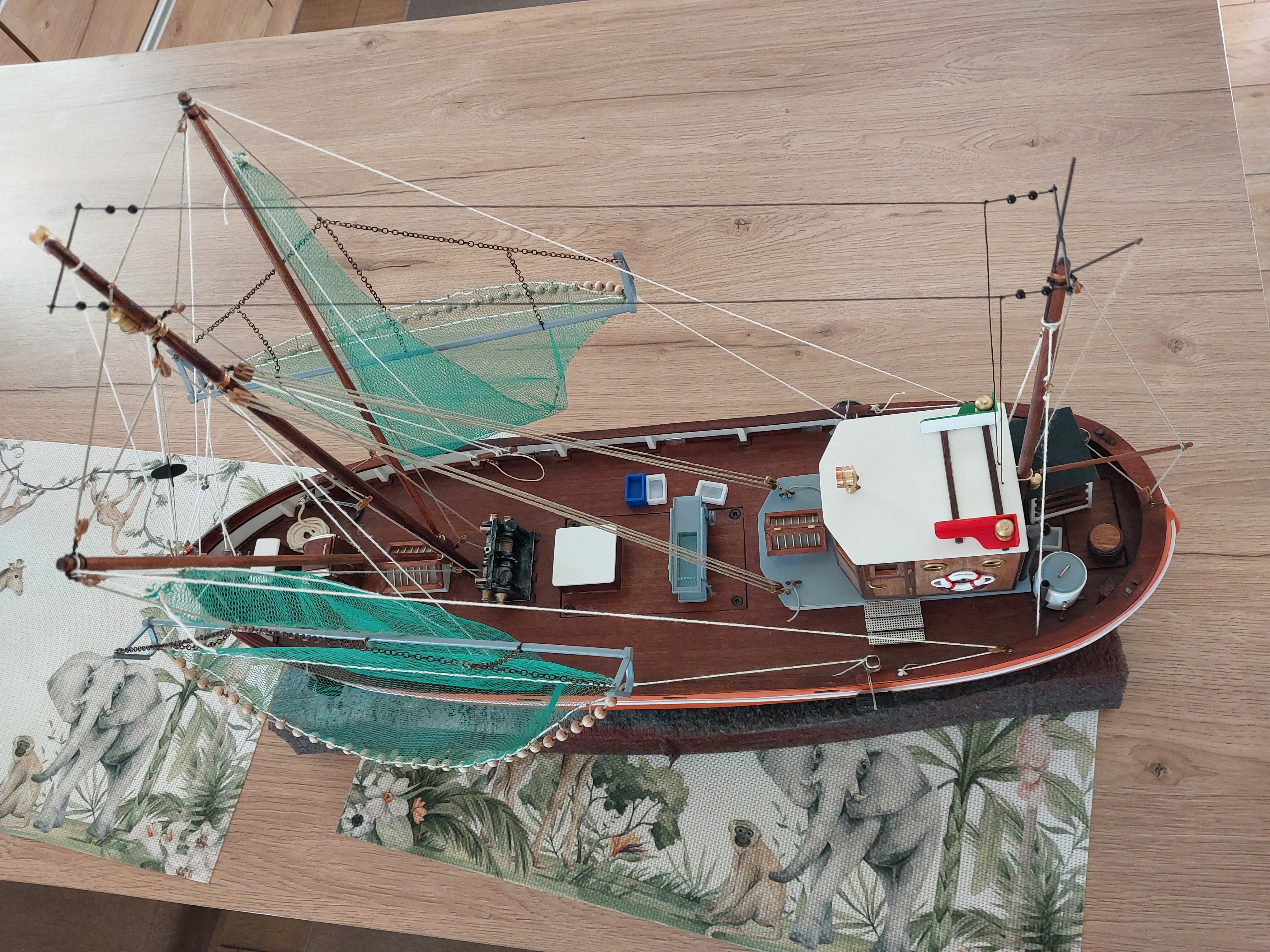Witam pracę zbliżają się do końca. Pozostało zrobienie sieci i pomalowanie załogi. Myślę, że na koniec maja model powinien być gotowy i pozostanie zamieścić link do filmu z prób na akwenie.