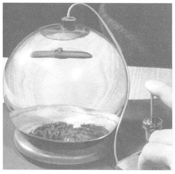 i szklanej butelki napełnionej wodą tak do szyjki. We flaszkę należy wrzucić fragment zapałki i palcem wywołać nadciśnienie. Zapałka utonie. Po zdjęciu palucha wypłynie.