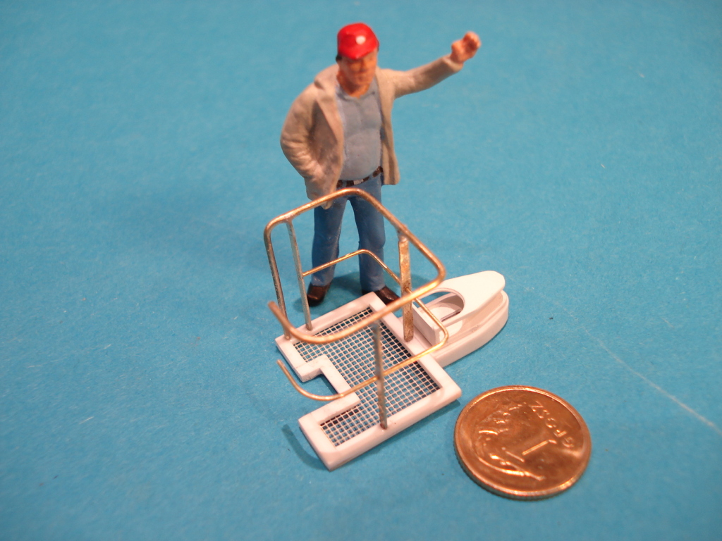 Z polistyrenu naszatkowałem ramki platformy , wkleiłem kawałek siatki z Abera . Wkleiłem słupki wytrawione przez Romana i wlutowałem reling . Odczyniałem egzorcyzmy z chwaloną i polecaną pastą "koki" , ale chyba nie umiem tym ustrojstwem lutować , połączenie jest zbyt słabe według mnie . Polutowałem kolbą na cynę i pastę co żem otrzymał od Andrzejka Pierwszego , za co dziękuję .