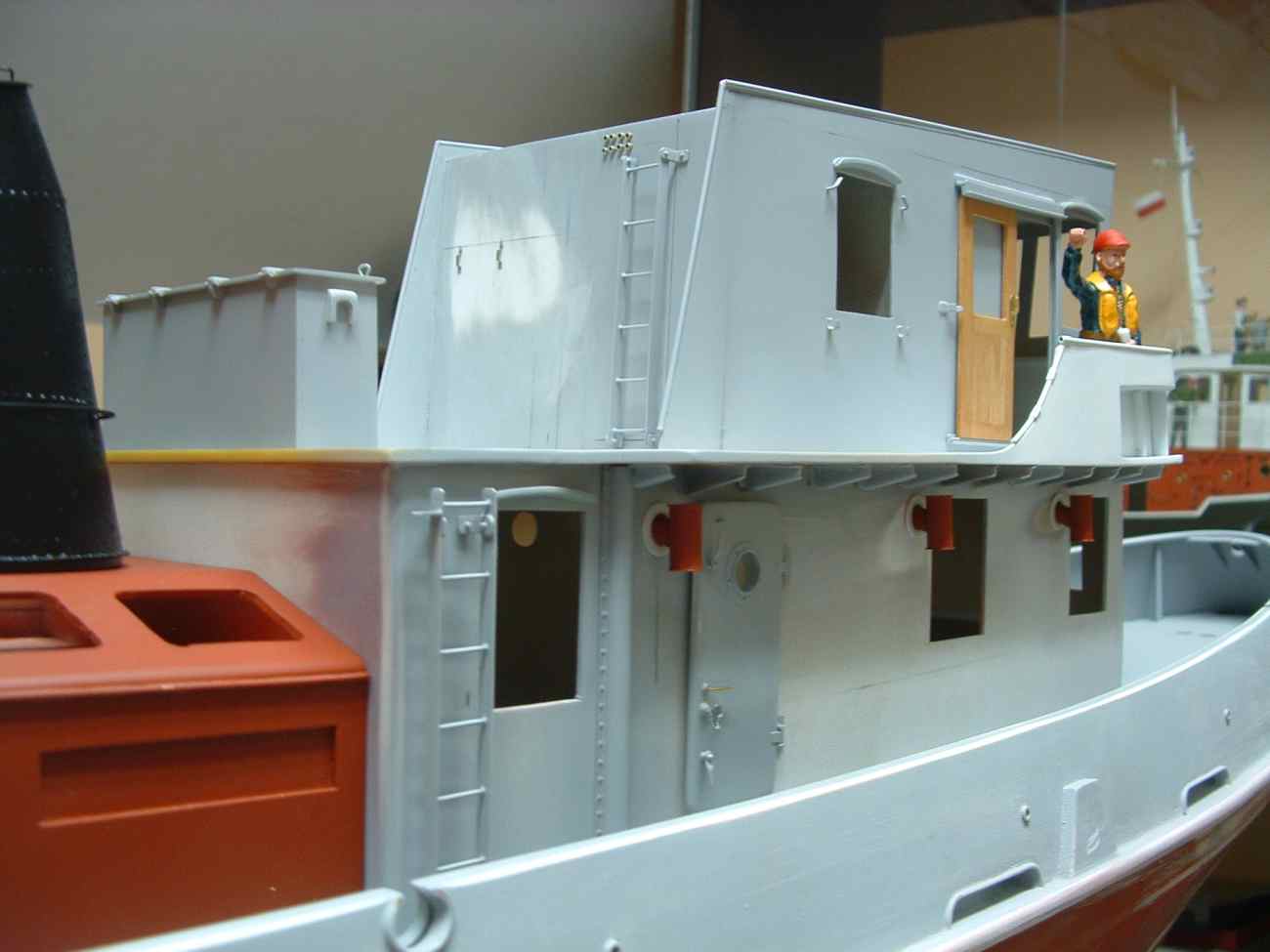 Tym razem jeden z nielicznych elementów z drewna drzwi przesuwne do sterówki , daleko mi do kolegów „drewniaków” i podziwiam ich za to co robią i jak robią.