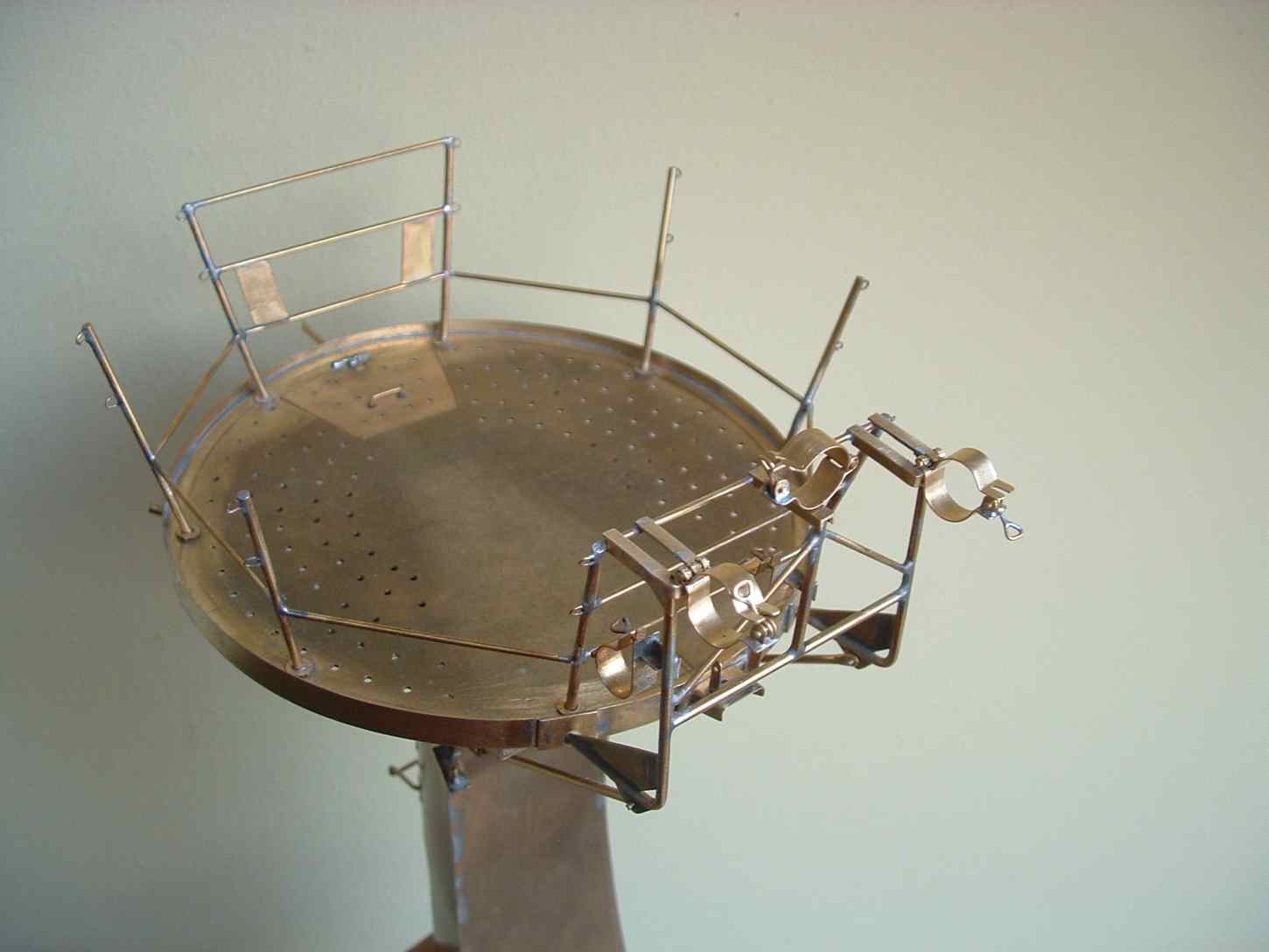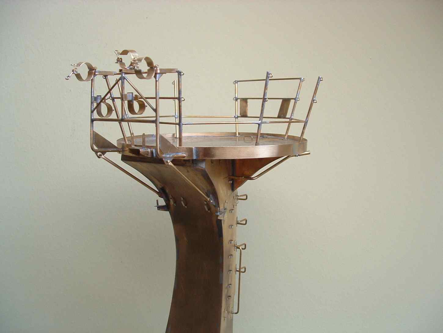 Wieża główna w końcu w całości zrobiona w ogólnym zarysie , brakuje jeszcze reflektorów, syreny, i instalacji elektrycznej oraz linki stalowej na górze relingu nie wspomnę już o armatce wodnej której zrobienie będzie nie lada wyzwaniem dla mnie, ale to dopiero będzie zamontowane już po pomalowaniu , tym bardziej ze nie wymaga to lutowania do Wieży a jedynie zamocowania na swoich podstawach które już są zrobione , teraz muszę dobrze odtłuścić całość i pomalować podkładem , malowanie tego elementu będzie dość upierdliwe ze względu na mnogość detali .
