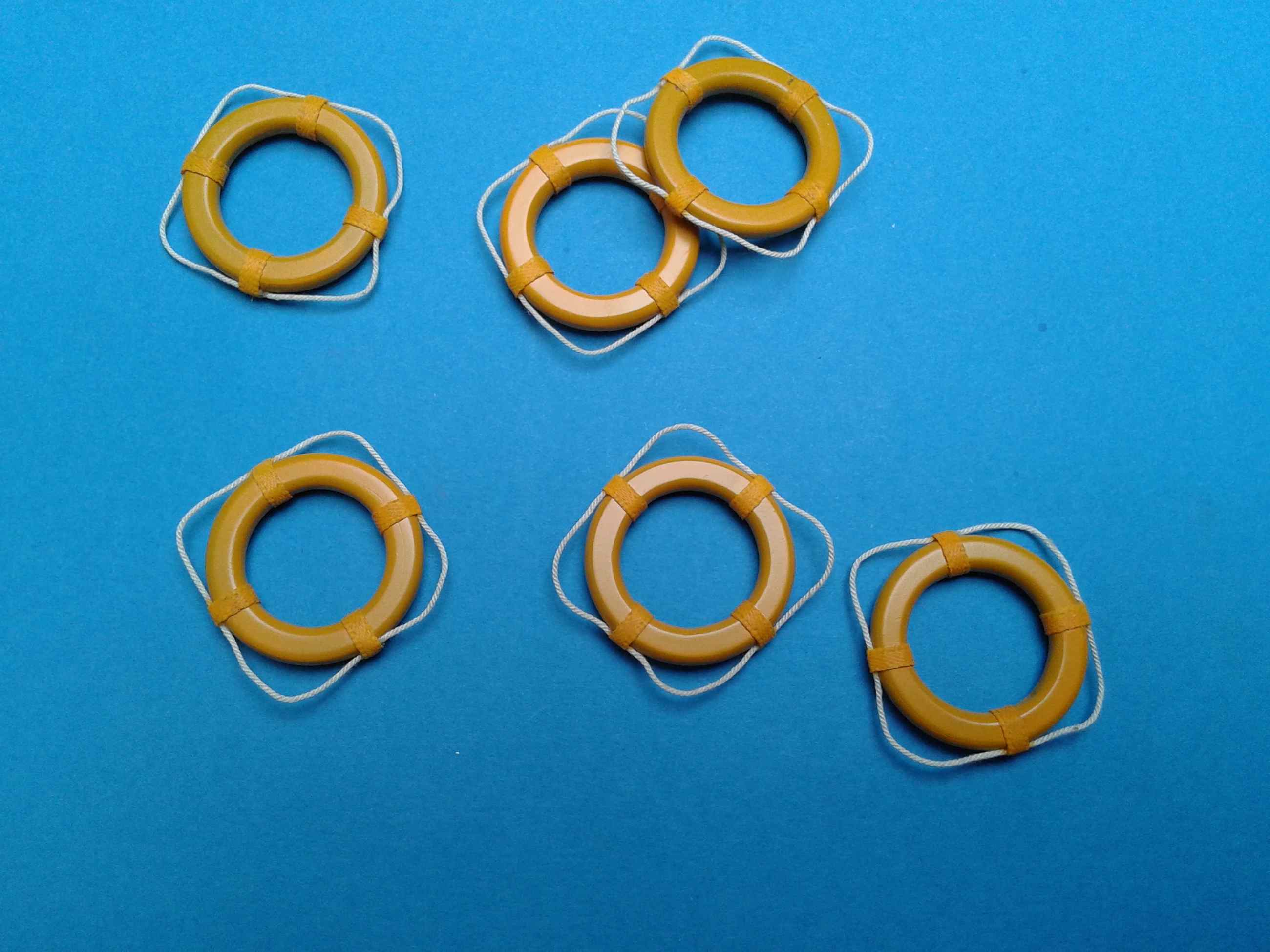 Koła ratunkowe , polistyren 4mm tokarka trochę miziania papierkiem ,linka , farbka Gunze i od takie 6 kółek wymodziłem