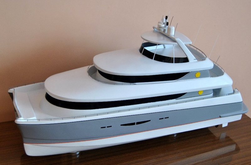 Ostatnie kilkanaście dni zajęła mi działalność zupełnie inna niż dorabianie kolejnych detali do kanclerza. Podjąłem się mianowicie odnowienia na zlecenie modelu jachtu motorowego, który to jacht dotarł to mnie aż z Tajlandii. Początkowo nie bardzo miałem ochotę przerywać budowę swojego modelu lecz perspektywa zarobienia paru groszy i wzbogacenia za nie swojego modelarskiego warsztaciku przeważyła