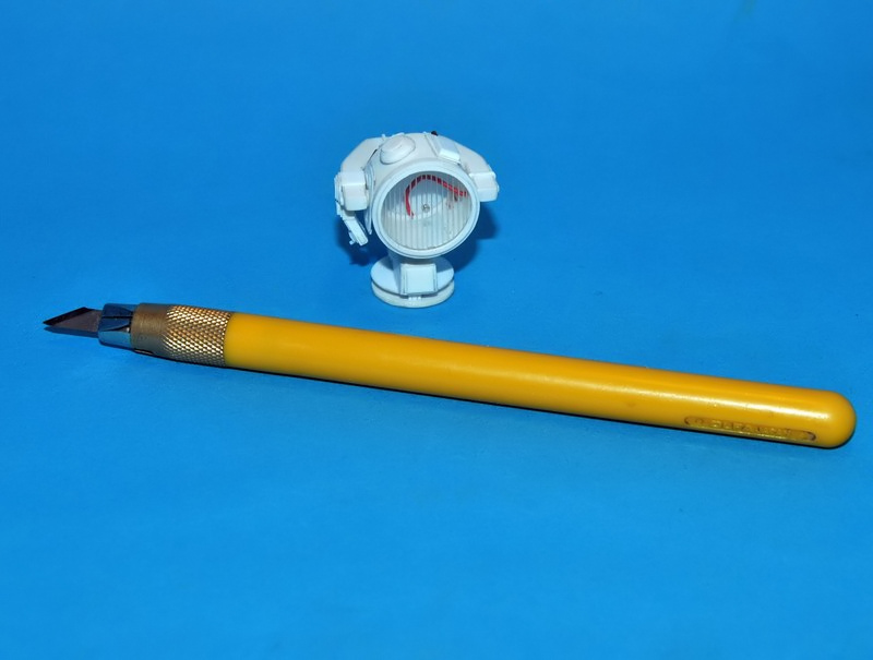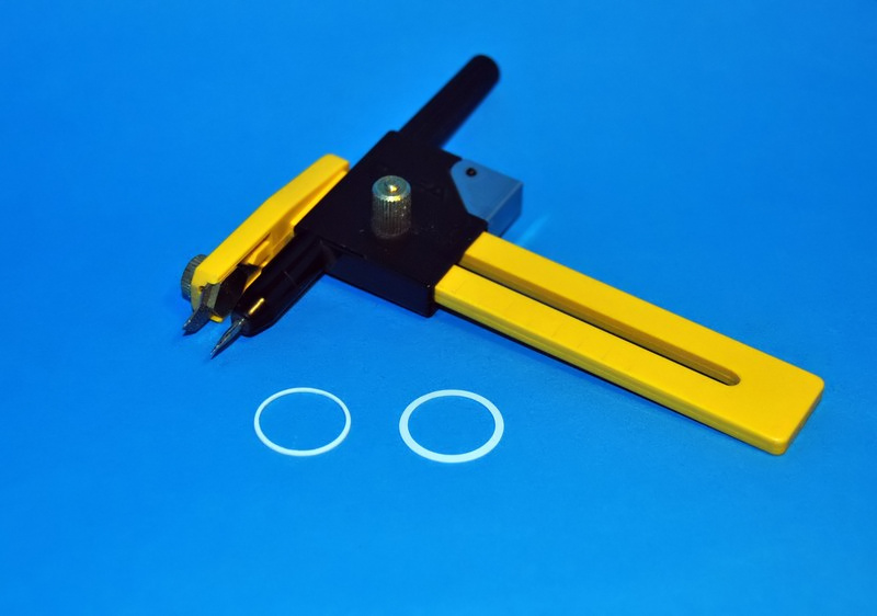 Kolejnym etapem w powstawaniu było wykonanie szkieł dla wszystkich reflektorów, które rozpocząłem od wycięcia dwóch polistyrenowych kółeczek przy pomocy cyrkla znanej marki,