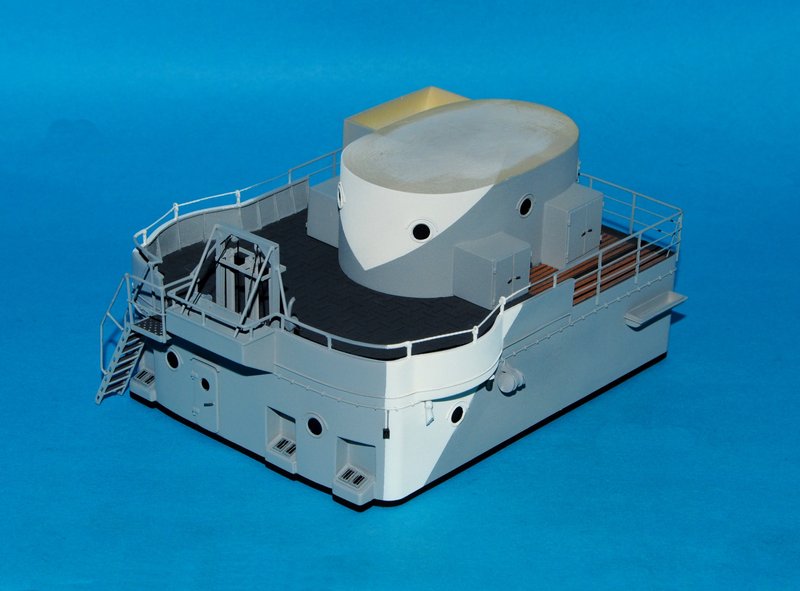 Kolejny poziom nadbudowy ukończony. Jak widać na fotkach otrzymał już ostateczne malowanie i w tej chwili wędruje na półkę aż do czasu ostatecznego montażu. Na nadbudówce brakuje oczywiście artylerii p-lot.