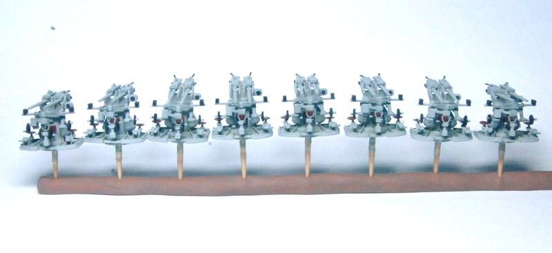Kolejne podzespoły ukończone. 8 działek Flak 3.7 cm-SK-C/30 po 116 elementów każde; wysokość działka to 16 mm.