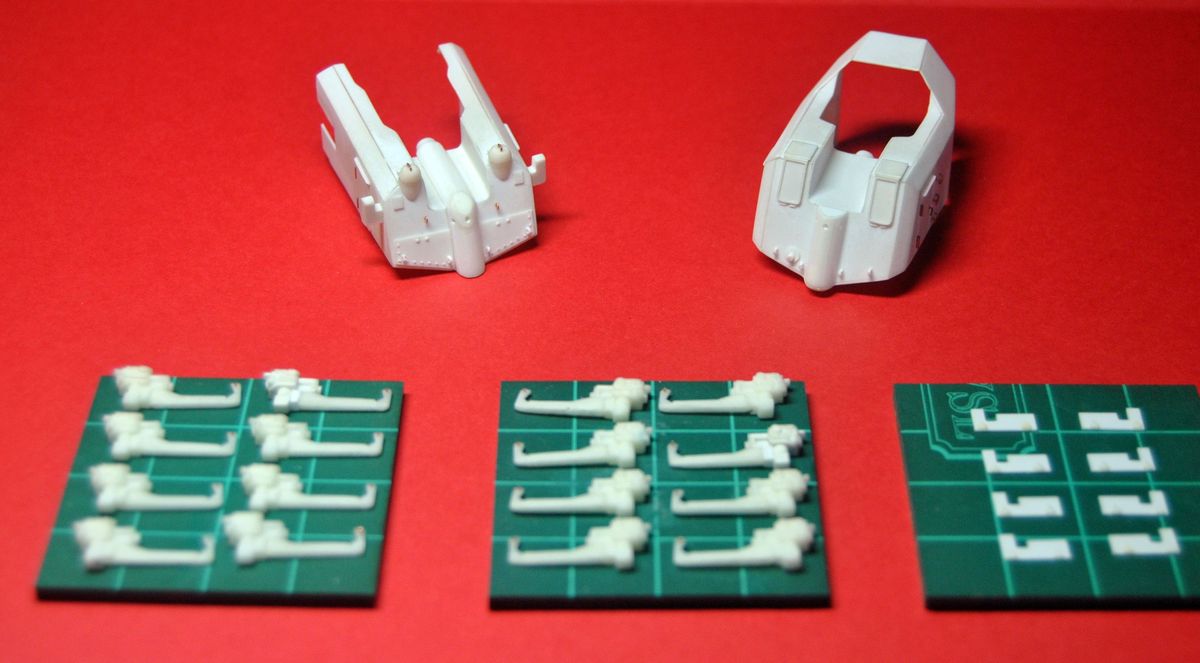 Działa już na podstawach i ich osłony w stanie surowym. Teraz pora na wszystkie detale jakie znajdują się na osłonach - poręcze, nity, klapy i klapki oraz masa innych których przeznaczenia dokładnie nie znam.