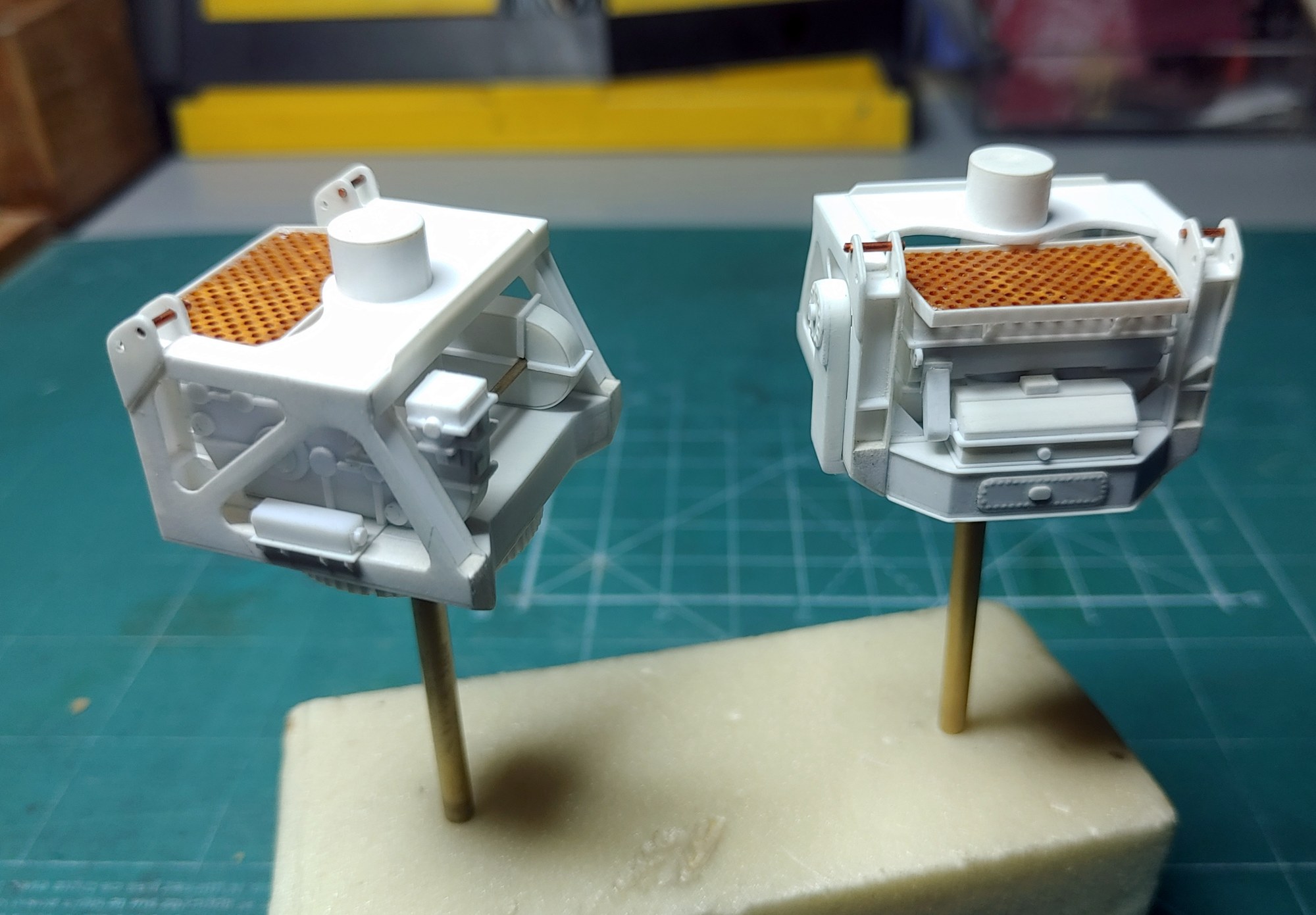 Wieże artylerii głównej skończone - pozostało tylko malowanie - a ja wziąłem się za kolejne elementy. Tym razem na tapecie dźwigi.
