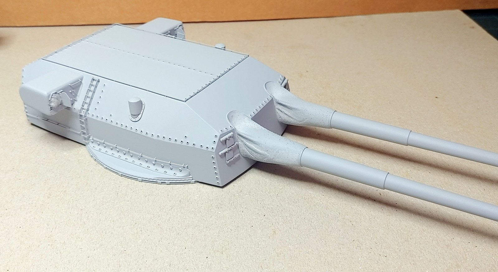 Udało się dziś prysnąć podkładem ukończone wieże artylerii głównej