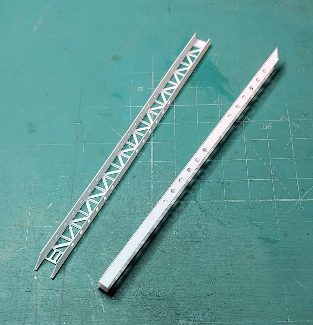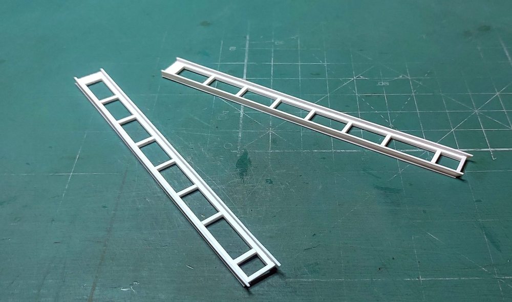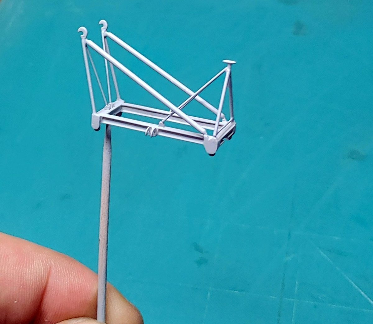 Wykonałem kolejne elementy; podstawy wodnosamolotów, w oryginale wysuwane hydraulicznie z wnęk w pokładzie głównym. Elementy przylegające bezpośrednio do pływaków samolotów wykonałem ruchome by przy ostatecznym montażu wszystkiego ładnie przylegały. Każda z podpór to 23 pojedyncze części a cały podzespół ma 8 mm wysokości
