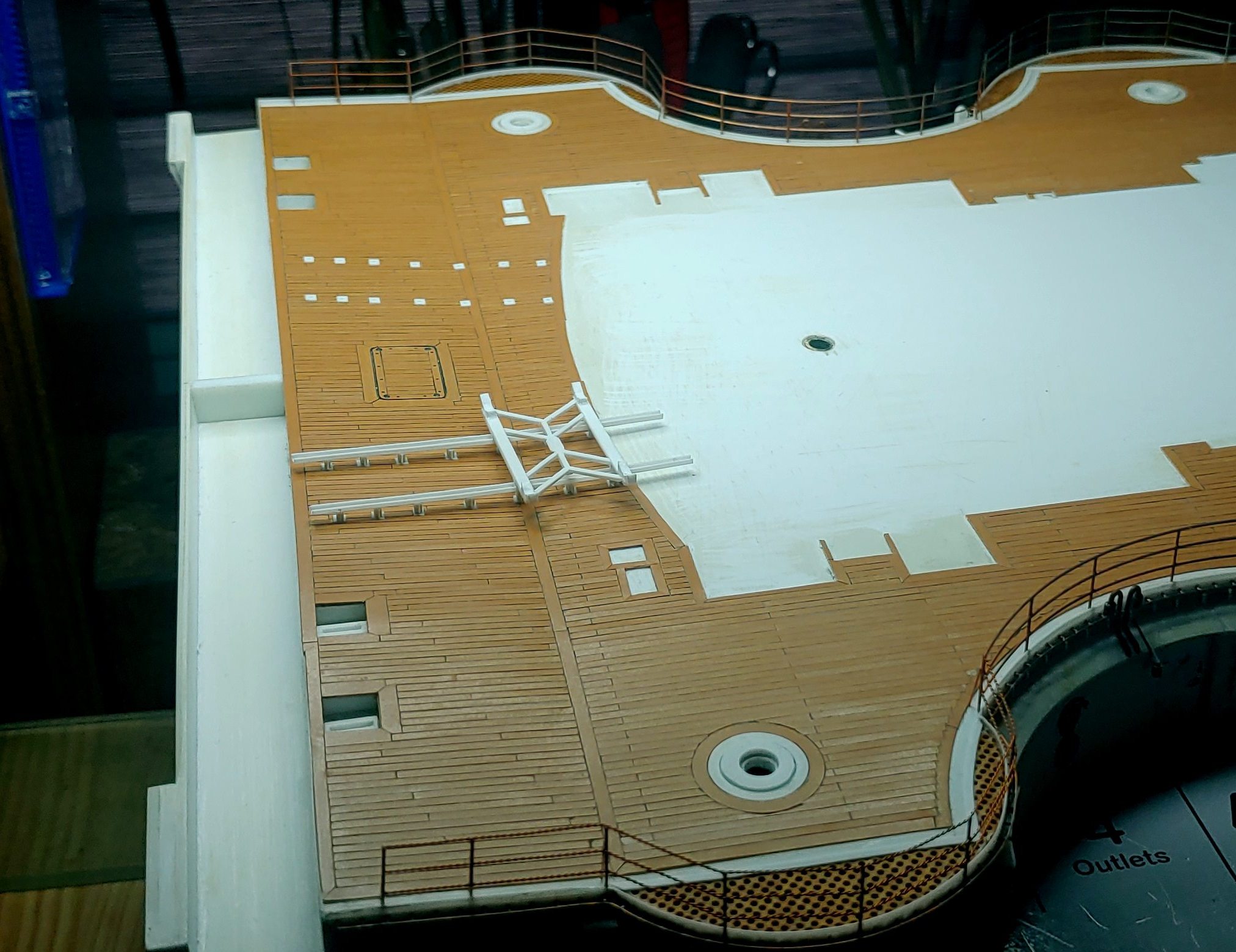 Stocznia nadal pracuje pełną parą. Na dzień dzisiejszy ostatnie (dolne) poziomy nadbudówek ukończone i gotowe do malowania. W tej chwili kończę obydwie katapulty które będą zamocowane do nadbudówek już po malowaniu. Podsumowując po pomalowaniu dolnych poziomów nadbudówek górę można uznać że mam ukończoną - pozostanie oczywiście w późniejszym czasie montaż tego wszystkiego do kupy i zamocowanie wszystkich "sznurków".