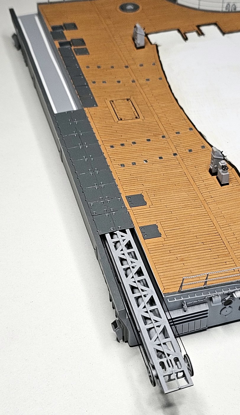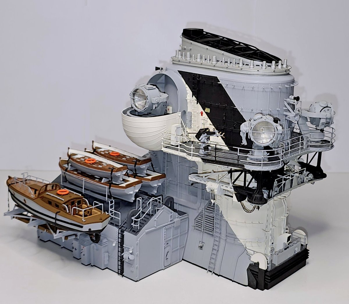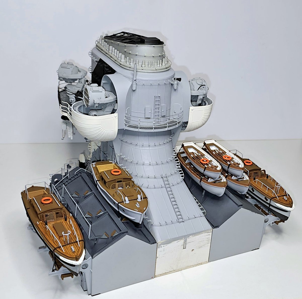 Hangary przykominowe doczekały się ostatnich elementów wyposażenia w postaci szalup i kutrów i tak jak widać poniżej prezentują się wraz z kominem