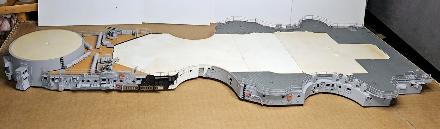Końca budowy doczekała się dolna część nadbudówki dziobowej. Tym samym dobiegła końca budowa wszystkiego co znajduje się powyżej pokładu głównego.