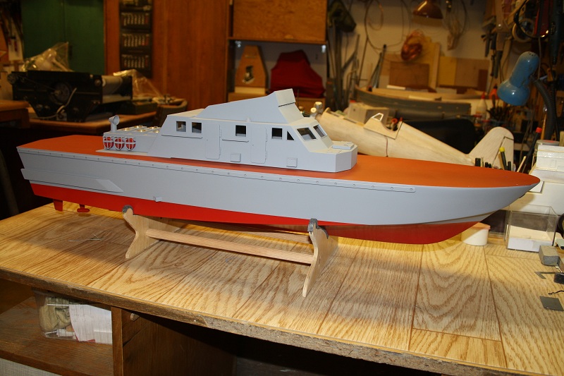 Kadłub oraz nadbudówka przeszły pierwsze malowanie. Niedociągnięcia zaszpachlowałem i przyszlifowałem. Czas na kolejne malowanko :)
