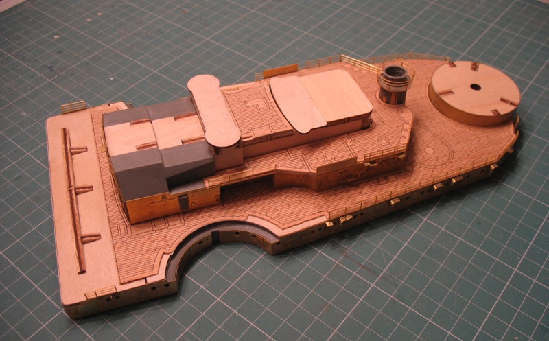 prace nad nadbudówkami trwają gdzie niegdzie drobne szpary do zaszpachlowania i szlifowania ale ogólnie wszystko fajnie pasuje w międzyczasie skleiłem i pomalowałem platformy - trochę małe