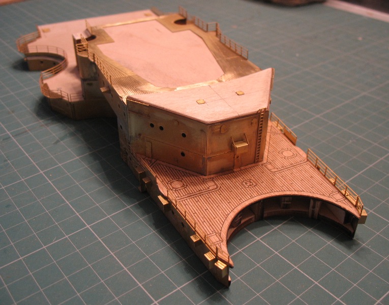 Dziś poprzyklejałem fototrawki do nadbudówek no i sobie złożyłem z pokładami by zobaczyć jak wygląda