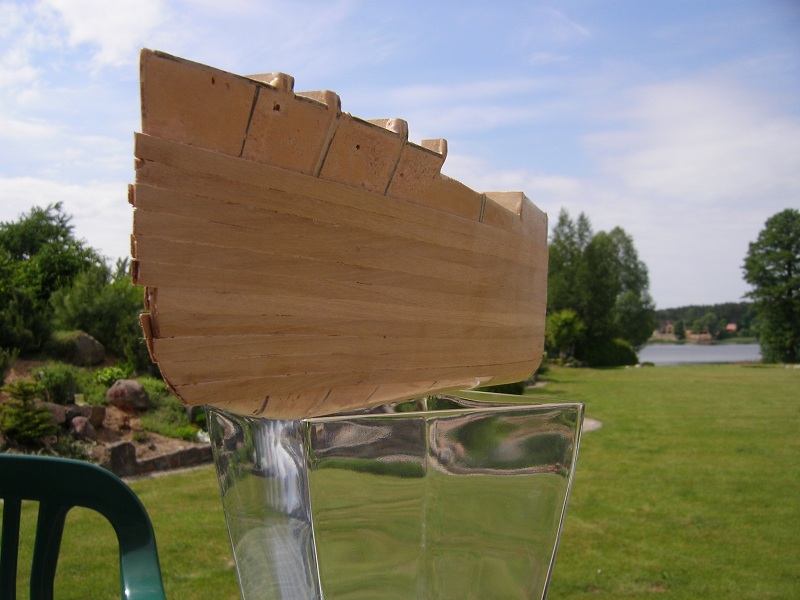 Na razie trzeba skończyć poszycie no i oczywiście "wyprowadzić" jako tako rufę.Pozdrawiam.