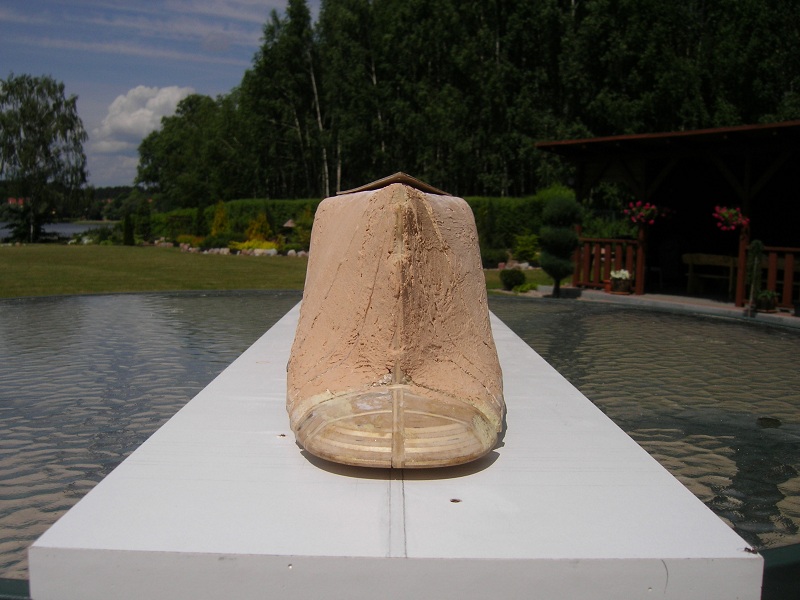 Witam. Można powiedzieć , że prace nad pierwszym poszyciem części dziobowej zakończyłem. Pozostało szlifowanie i pokrycie 2x kaponem. Po "spięciu" całości planuję poszycie właściwe (jeszcze nie podjąłęm dezyzjii co do materiału). Ale na razie trzeba popracować nad częścią rufową. Pozdrawiam. .