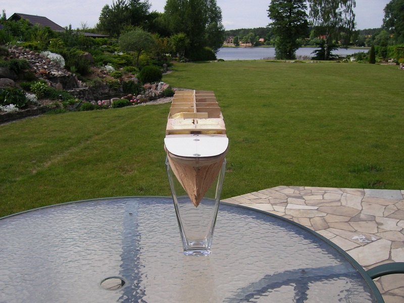 . Część rufową jako-tako udało się naprostować. Końcowe poprawki będą po położeniu listewek poszycia pierwszego. Aktualnie prace trwają nad poszywaniem listewkami, technika-podobnie jak w części dziobowej . Z tym , że tu nie przykładam aż tak dużej wagi do drobnych szczelin między listewkami –cały kadłub będzie i tak szpachlowany. Pozdrawiam.