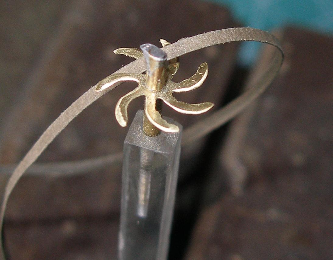 Ten glut z cyny stanowi uchwyt umożliwiający dokręcenie śruby (M1) mocującej śrubę napędową.