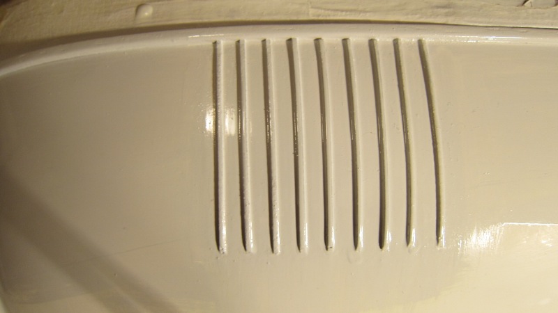 8. Najtrudniejsze i wymagające największej precyzji i czasu było wykonanie i pomalowanie wraz z kadłubem pionowych listew ochraniających kadłub przed uszkodzeniami sprzętem połowowym.