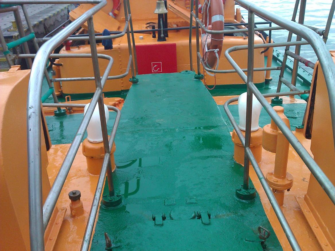 Natomiast wersja którą chciałem robić czyli czerwono-biała z masztem i koszem, nie jest możliwa do dokładnego odtworzenia, ponieważ nie zachowała się żadna dokumentacja, a relacja załogi jest sprzeczna:( np jedni twierdzą, że wejście do sterówki znajdowało się z tyłu a boczne były zaspawane inni nie potwierdzają takiego stanu rzeczy i pare innych istotnych elementów...ja nie mam zamiaru budować jednostki "science fiction", także będę amitny i wykonam stan obecnyw malowaniu pomarańczowym , poszerzając pokład i robiąc ten magiczny stelaż na podstawie zdjęć...