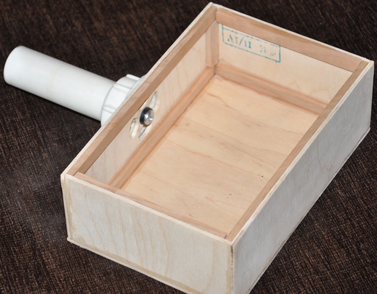 W tym tygodniu otrzymałem od Romanova wypaloną laserem sklejkę formatu A5 do urządzenia formowania próżniowego (główna płytka z otworami). Resztę sobie dociąłem brzeszczotem i oto powstała moja maszynka. Zastosowałem również kawałek rurki od zlewu, która doskonale średnicą pasuje do rury od odkurzacza. Montaż na śrubkę.