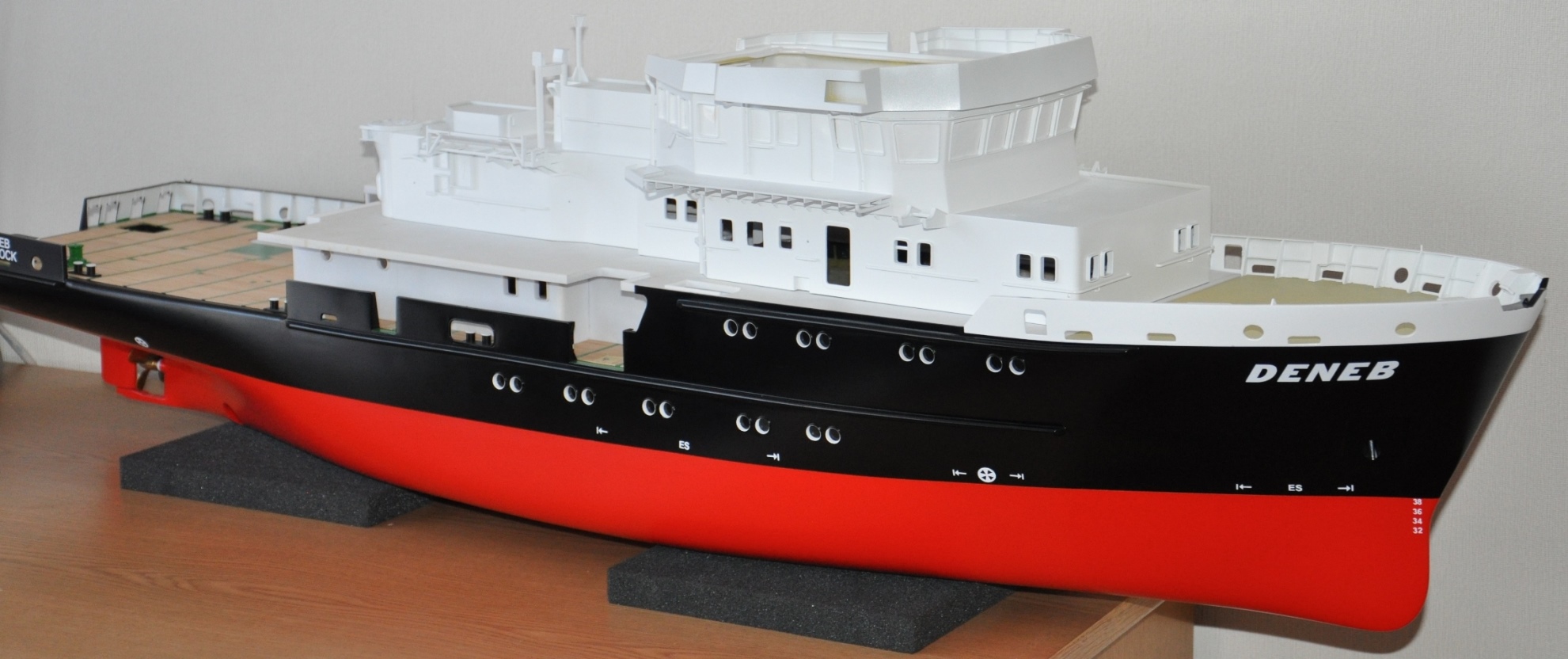 Dzisiaj nie mogłem się powstrzymać i złożyłem kadłub, pokład i nadbudówkę w całość co by nacieszyć oko że jakieś postępy są. Na razie całość bez pierdołek. Tego lata planuje resztę pomalować na ostateczny kolor i jak dobrze pójdzie to pod koniec lata będę już powoli składać w całość z tego co dotychczas zrobiłem.