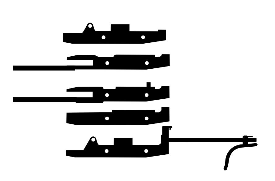 Zaprojektowałem blaszkę sobie taką, dzieląc WKM na warstwy i zakładając, że z pięciu warstw stworzę cały. W blaszkach pozostawiłem otwory montażowe, w naiwności swej uważając, że to wystarczy. Te kolejne warstwy wyglądały tak :