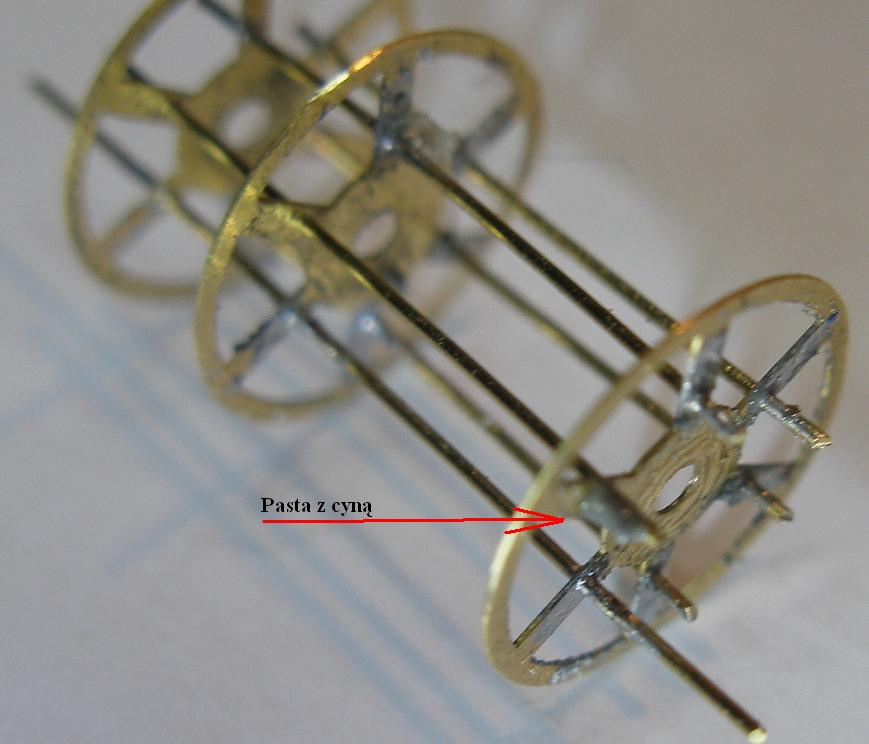 Przy lutowaniu trzeba bardzo uważać co by tulejek nie przylutować do kółek, bo kucha gotowa.