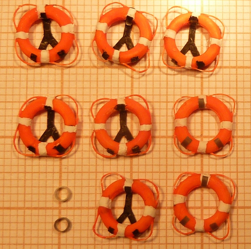 Koła ratunkowe też zakończone. Dwa zawieszone są na ściance pokładówki to i