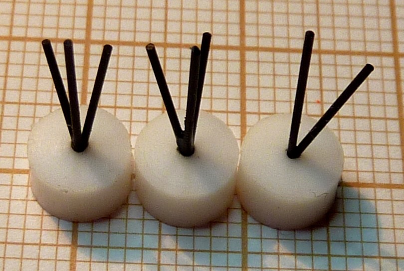 medyczne, w których zeszlifowałem ząbki na końcu (bo wyginały i kaleczyły drut) i wkleiłem na cjanoakryl