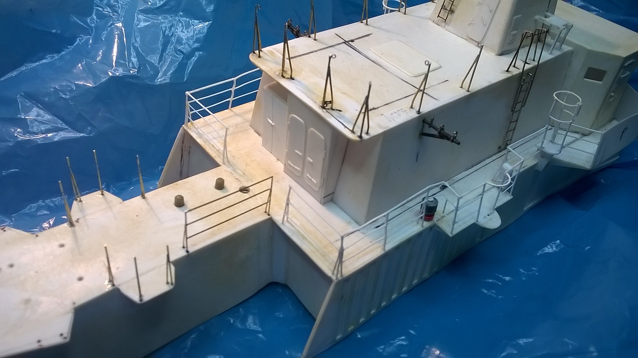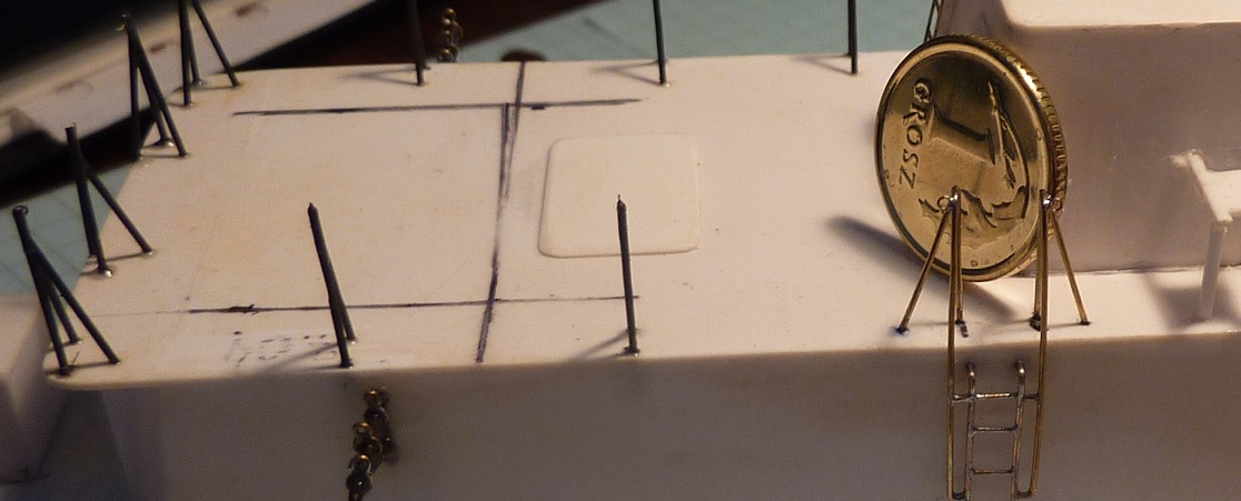 Po wyjęciu nadbudówki z pudełka od butów, stwierdziłem, że relingi, szczególnie te na górnym pokładzie są