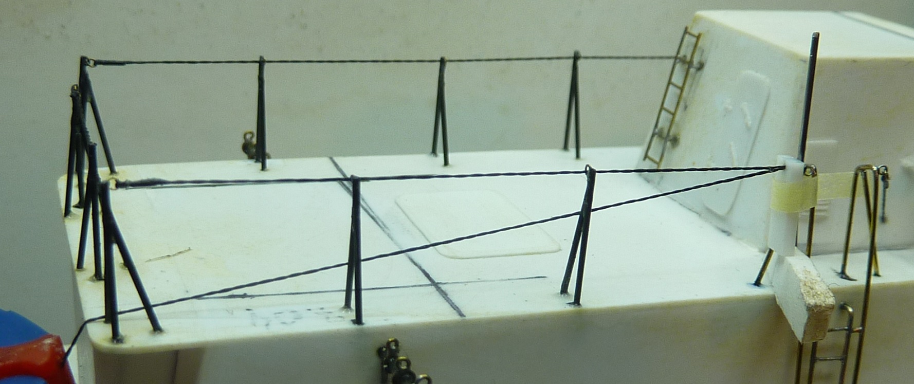 Witam,oglądam Twoje zmagania z modelem i jestem pod wrażeniem,ja elementy maluję przed montażem,W Cyklonie naklejałem na nici taśmę Tamiji w Vosperze tylko nici,pozdrawiam Marek