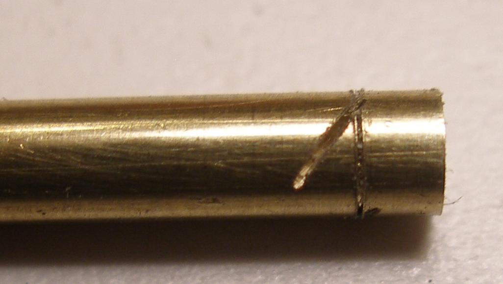 Jako trzonu użyłem wałka 3mm. Na wałku tym zarysowałem na tokarce pierścien w odległości