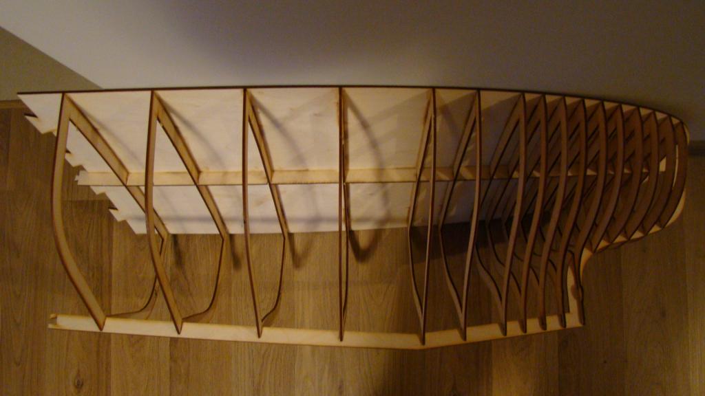 Szkeilet ze sklejki wodoodpornej 3mm oklejony listewkami. Reszta to polistyren.