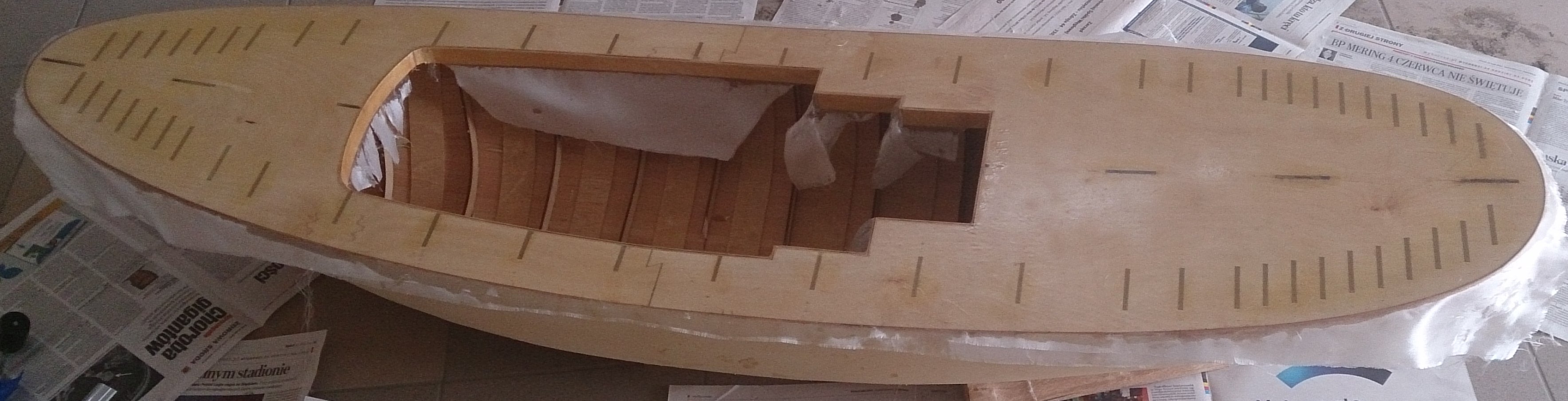Kadłub 1,6 m długości i około 75 cm mierząc po poszyciu i około 45 mierząc po pokładzie.