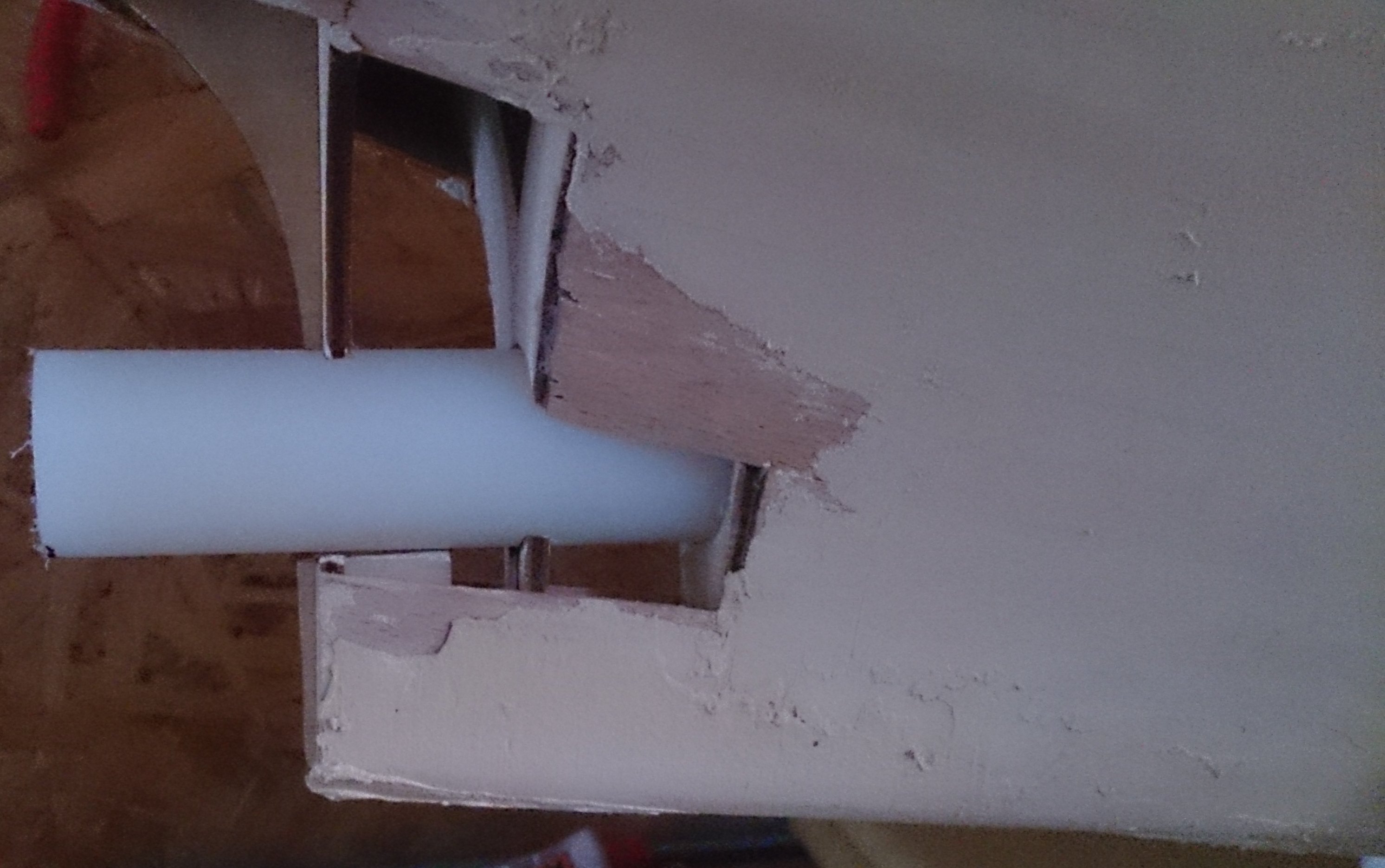 Ten tarnamidowy biały pręt posłuży za pochwę wału. W nim wywiercę otwór fi 10mm dla osadzenia na wcisk wału. Długość pręta tego określę doświadczanie. Nie będzie na całej długości wału. Długość wału 350mm. Jak osadę wał w pochwie wtedy całość wkleję w odpowiedniej pozycji wstępnie. Potem okleję poszyciem brakującym. Na koniec od środka zaleje żywicą.