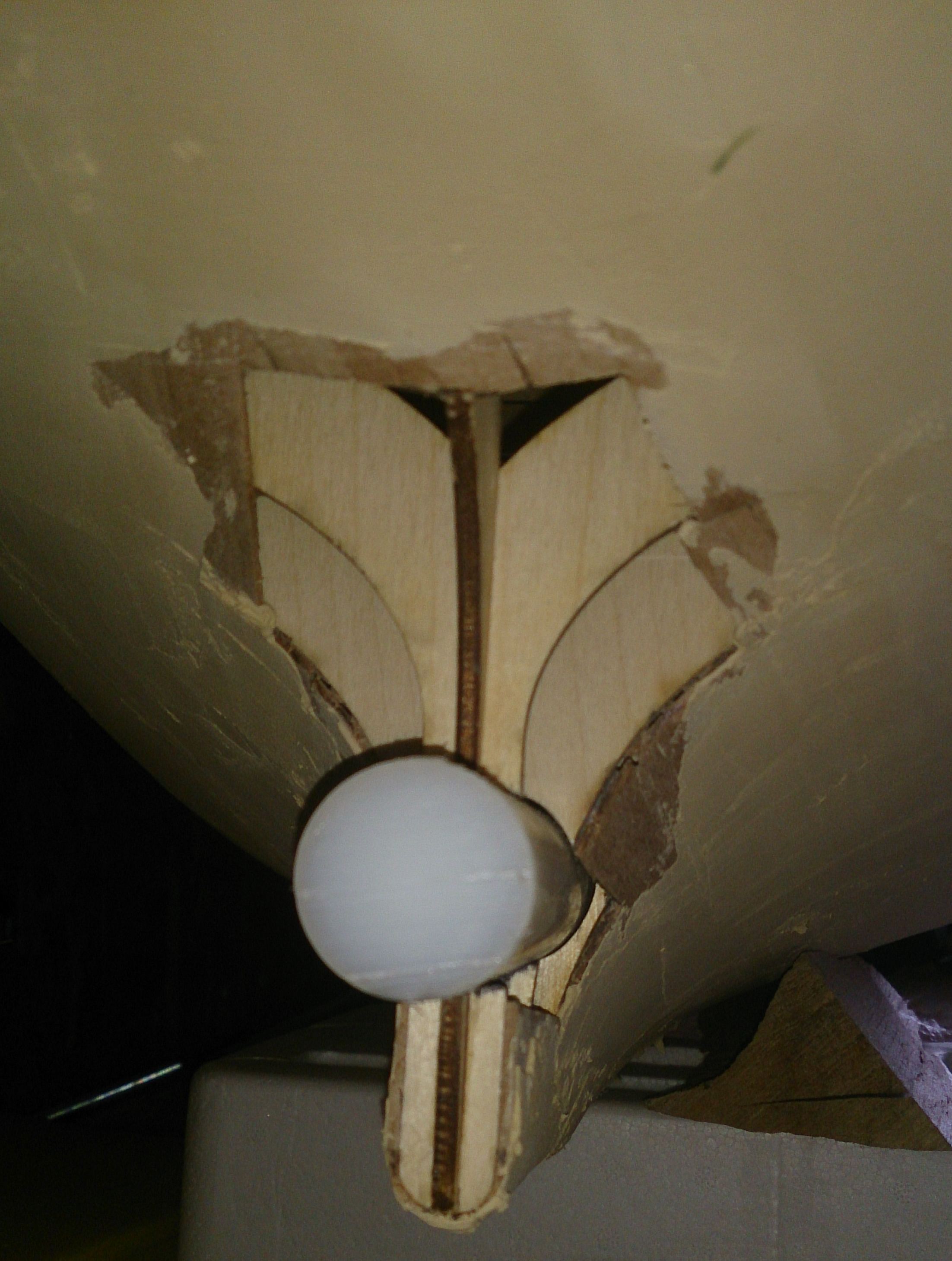 Postęp nie powala ale chwila wolnego była więć wydłubałem otwory fi 25 we wręgach na tuleje wału napędowego. Nieco wcześniej czyli piątek przy okazji pogody wyszpachlowałem wstępnie kadłub żeby zakryć szczeliny i nierówności pod żywice i laminat. Ale to za jakieś 2 tyg. Póki co muszę wykonać obudowę wału oraz pokryć rejon poszyciem.