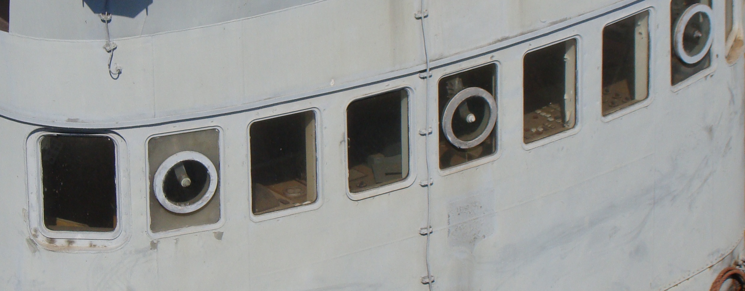 Na szczęście wnętrze sterówki jeszcze całe. Poproszę firmę o zgodę na wejście do środka bo statek stoi na terenie innej firmy i nie chcą wpuścić więc fotografowałem z zewnątrz.